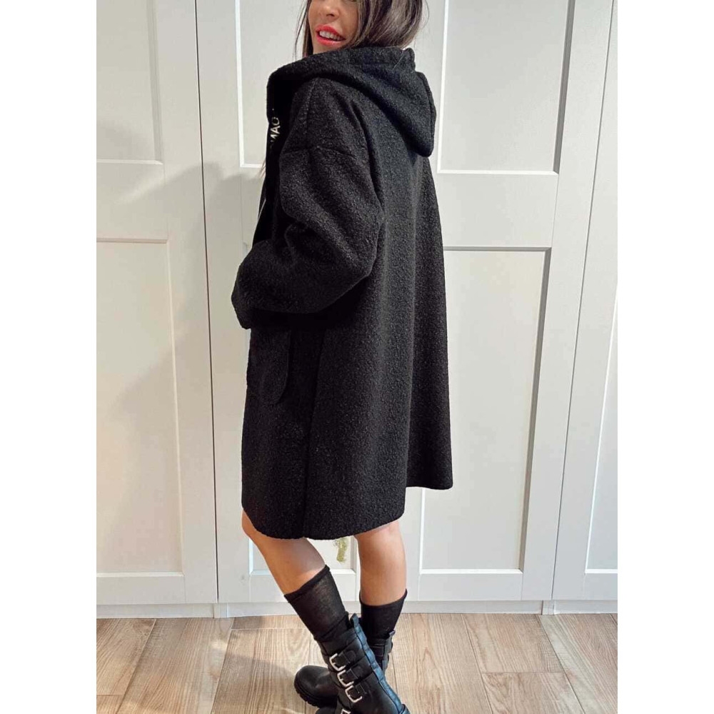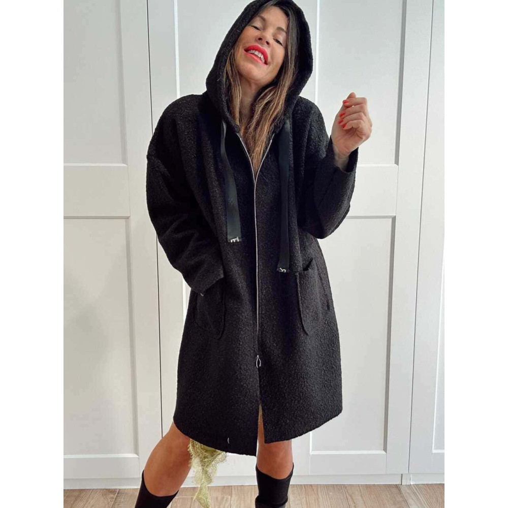 - Abrigo oversize confeccionado en tejido con acabado rizo.