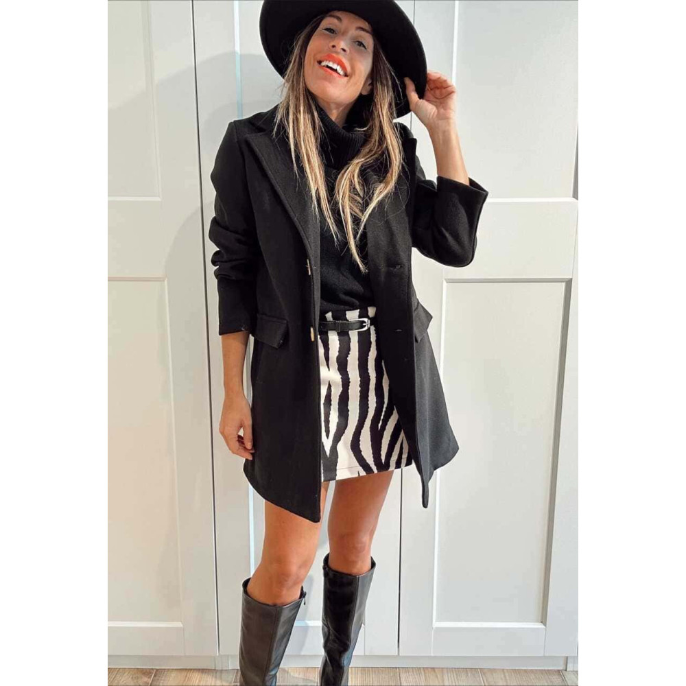 - Abrigo estructurado tipo sastre confeccionado en tejido efecto paño.
