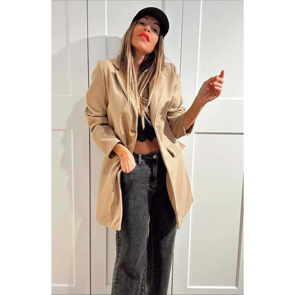 - Abrigo estructurado tipo sastre confeccionado en tejido efecto paño.