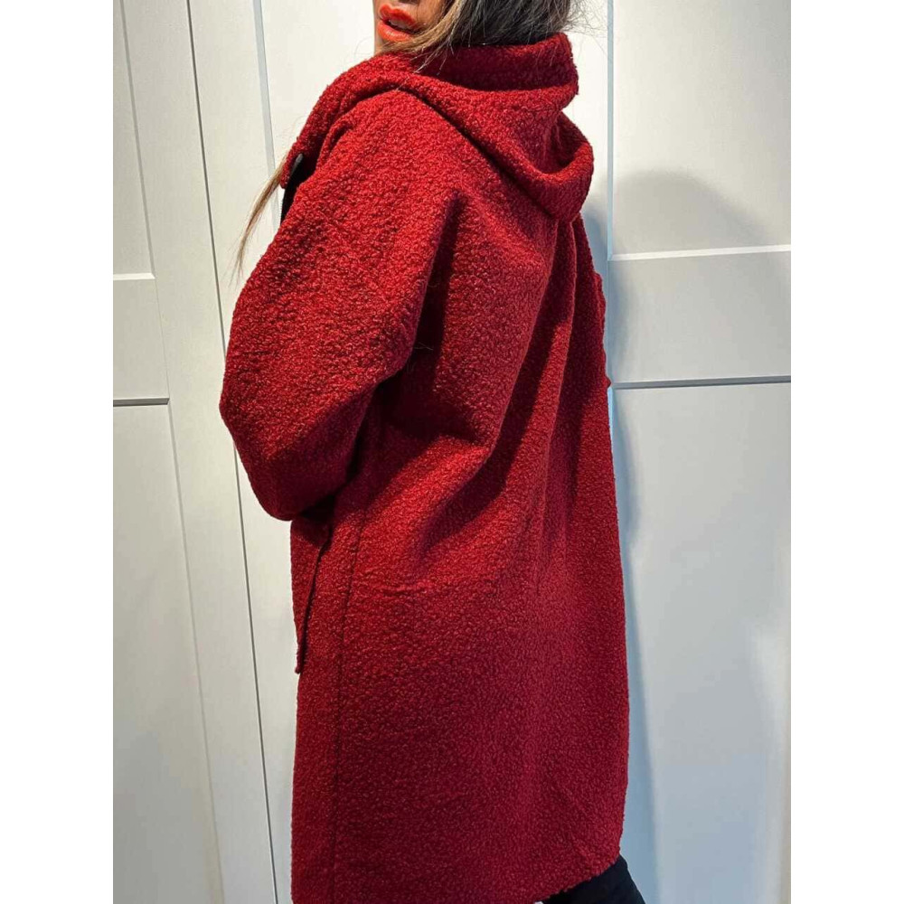 - Abrigo oversize confeccionado en tejido con acabado rizo.