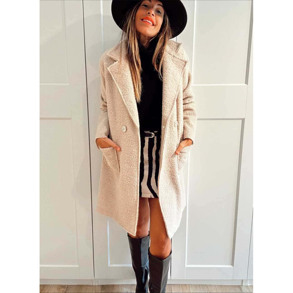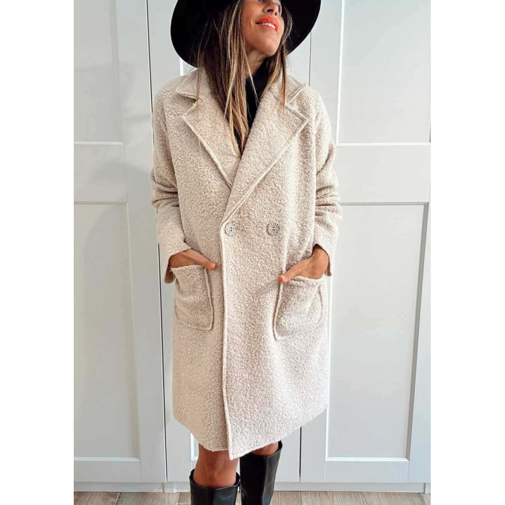 - Abrigo de mujer con largura tres cuartos e inspiración masculina.