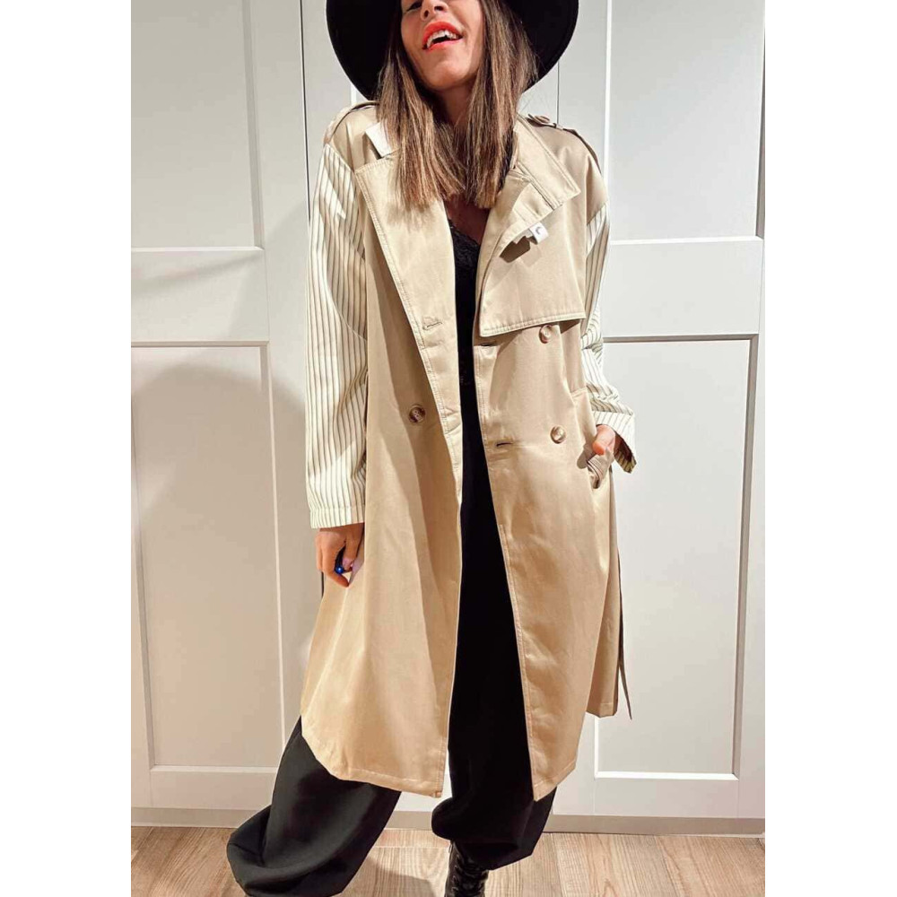 Gabardina Larga Mangas Combinadas LAZAIRE Taupe