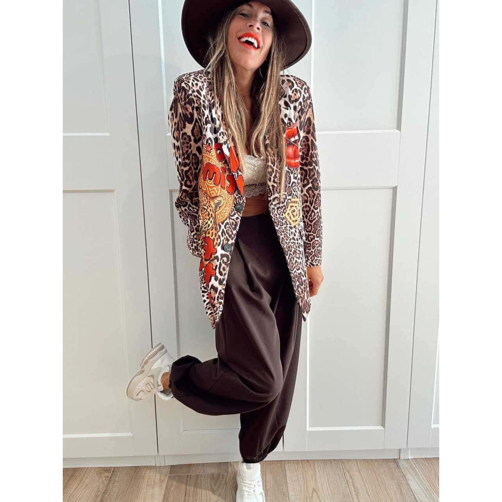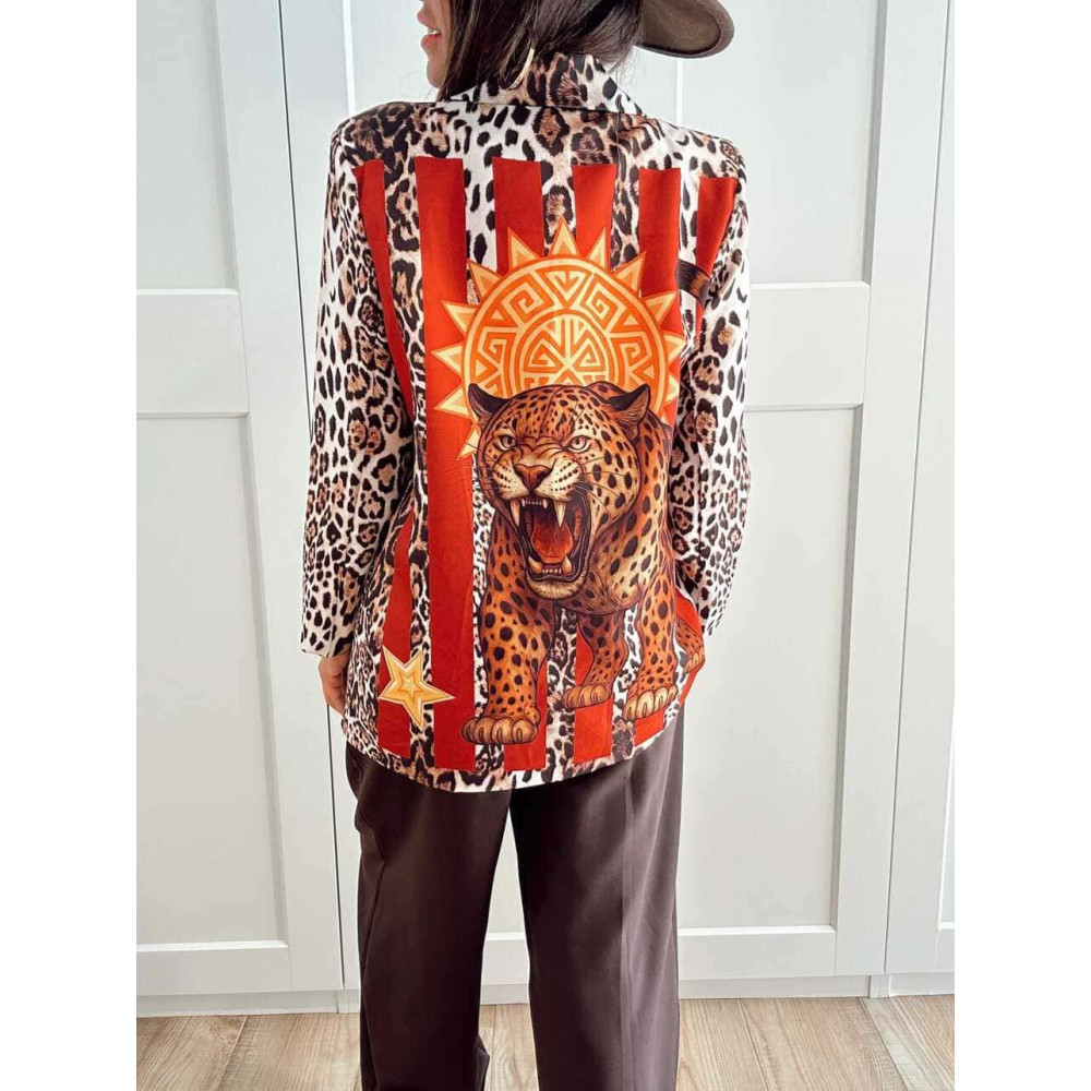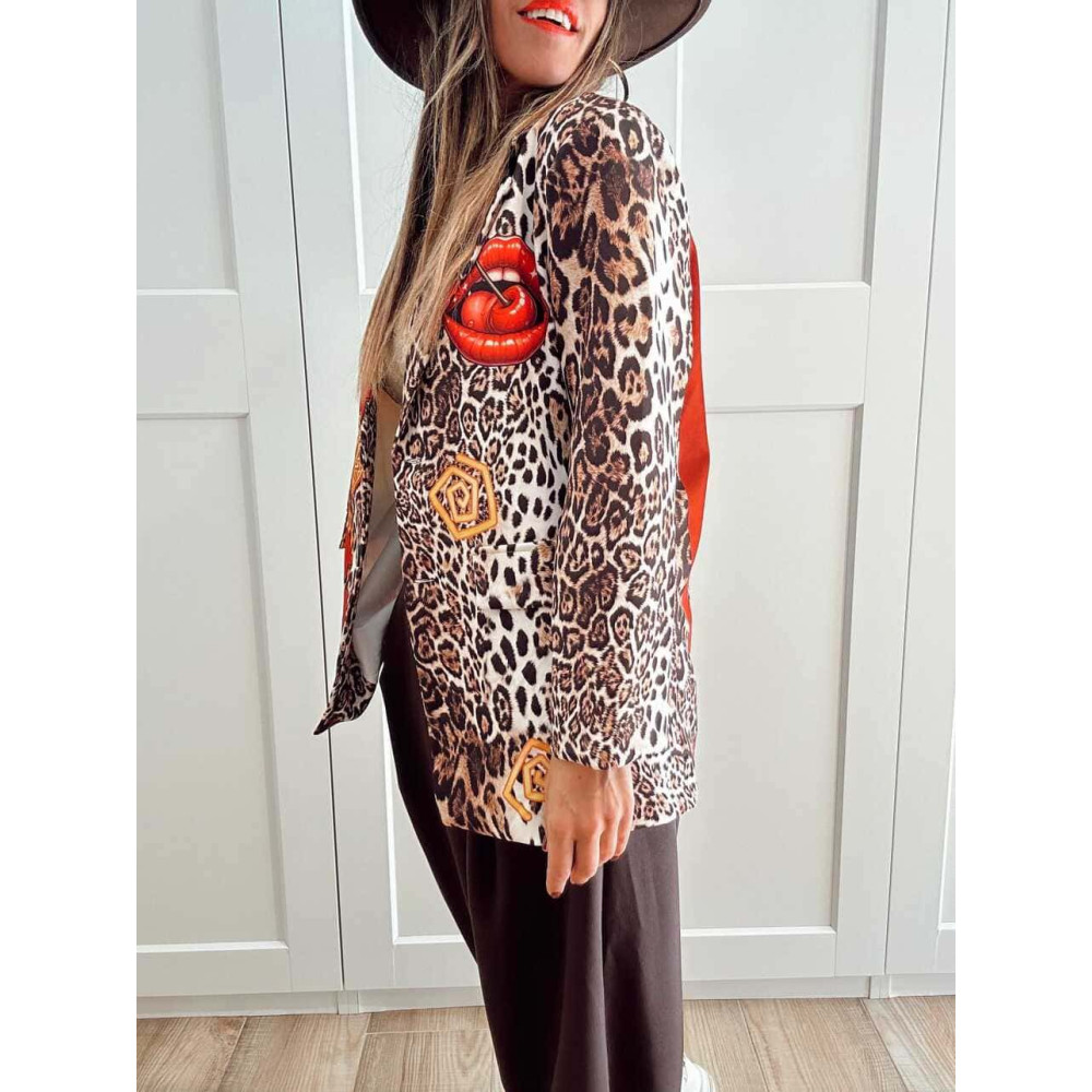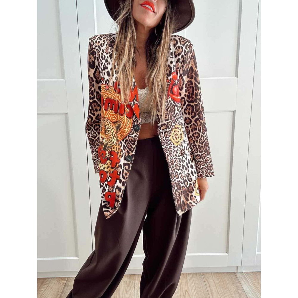 - Blazer de mujer con estampado animal print y motivos fantasía.