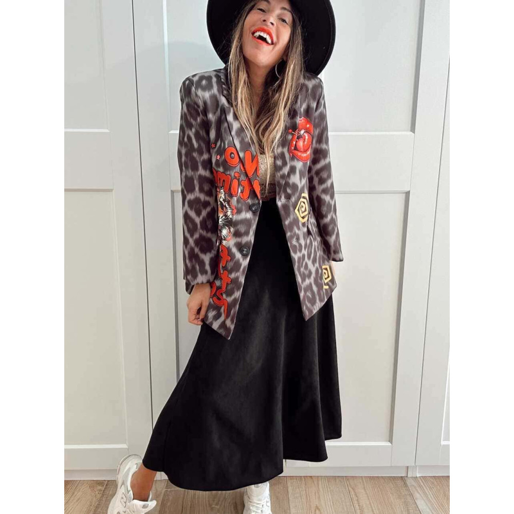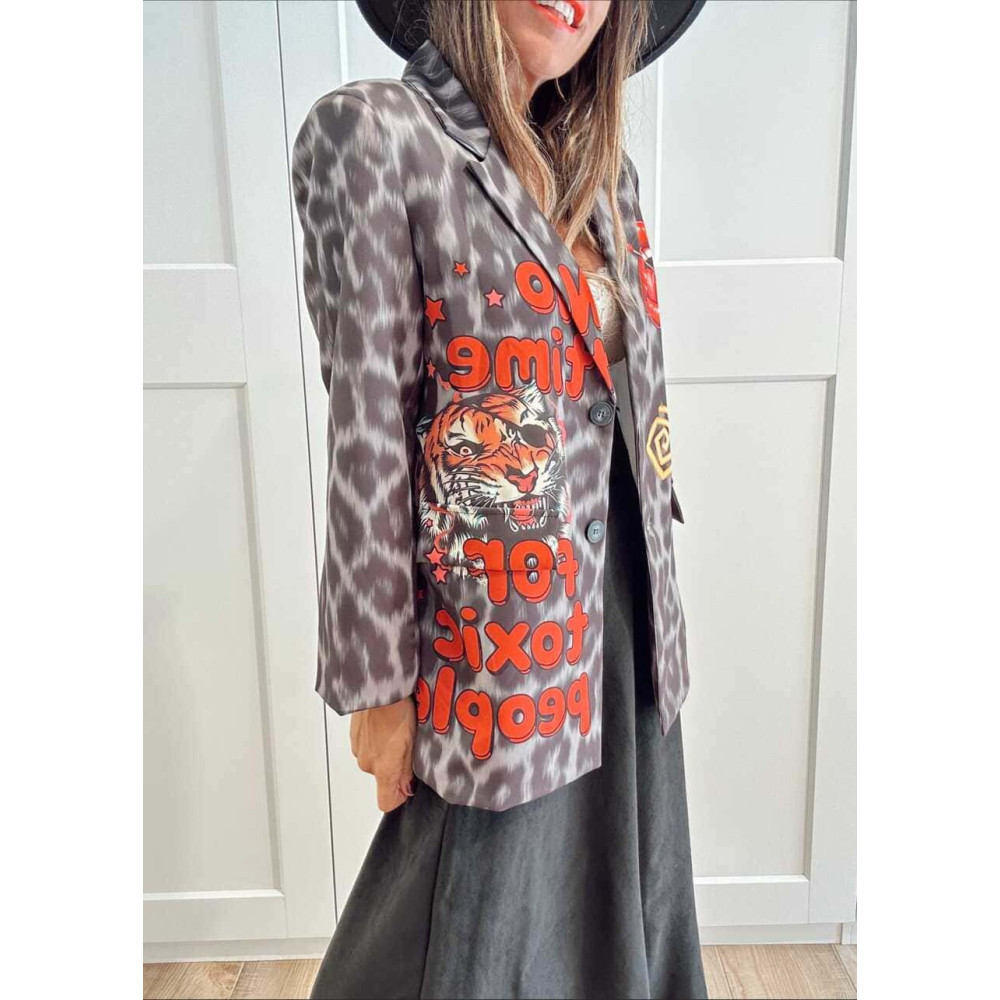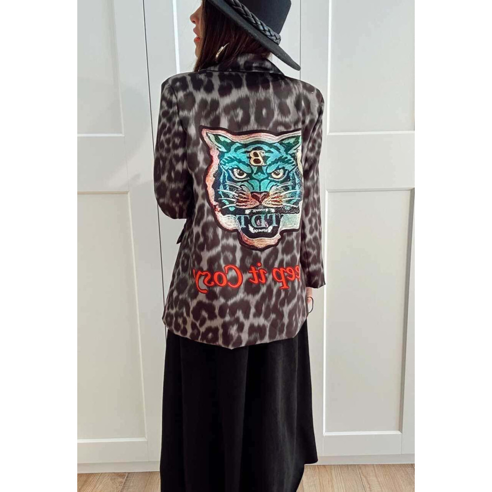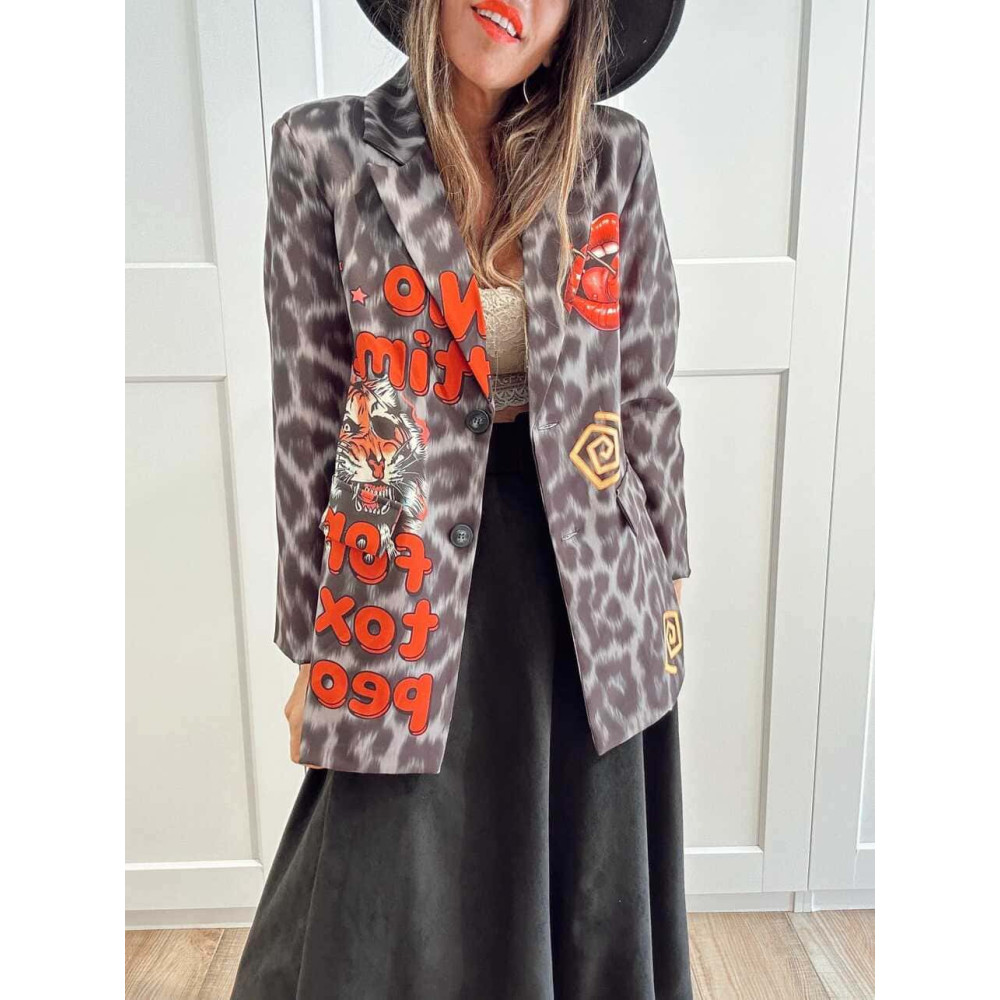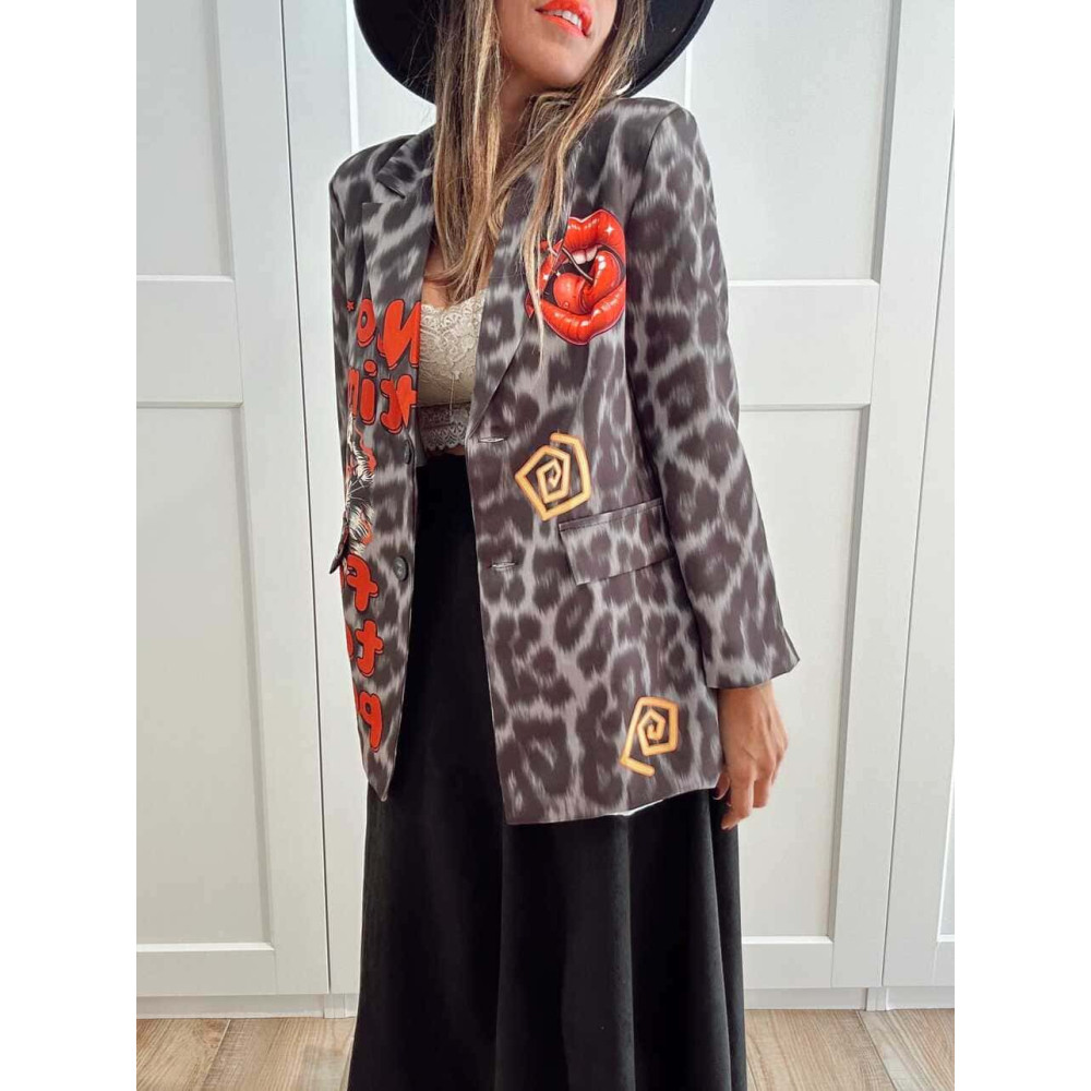 - Blazer de mujer con estampado animal print y motivos fantasía.