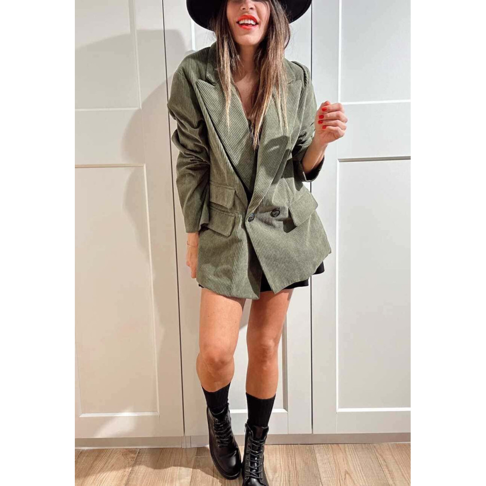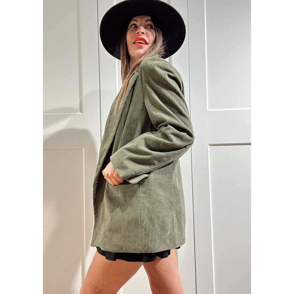 - Chaqueta tipo blazer con acabado pana.