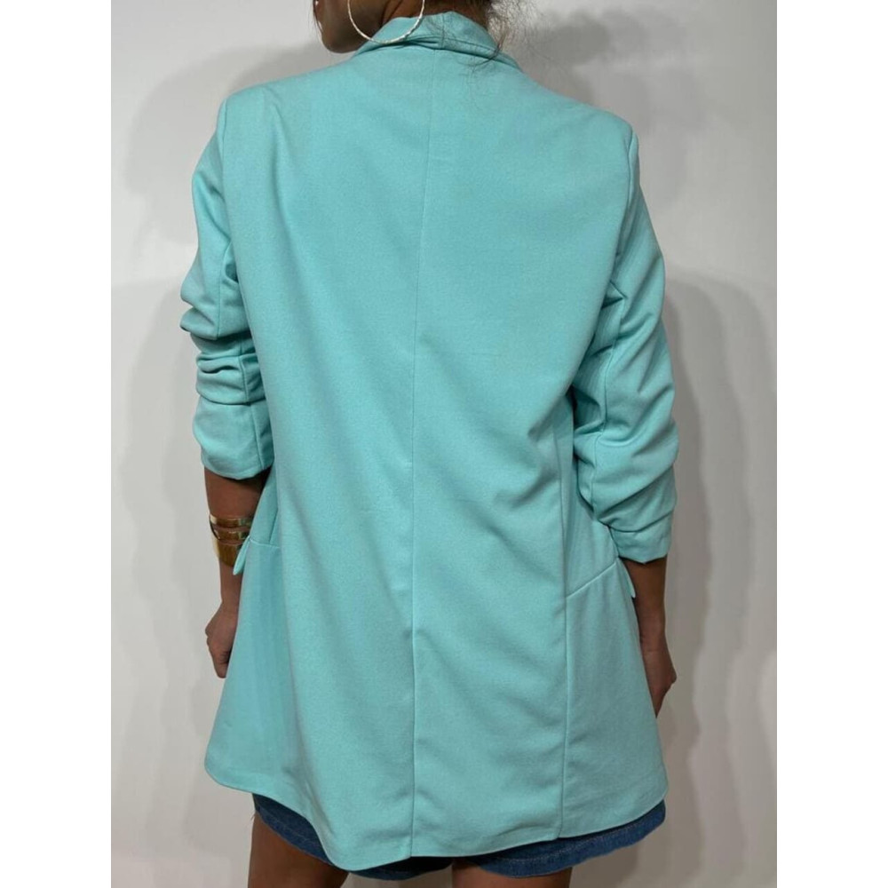 - Blazer básico de mujer con detalle de frunces en las mangas.
