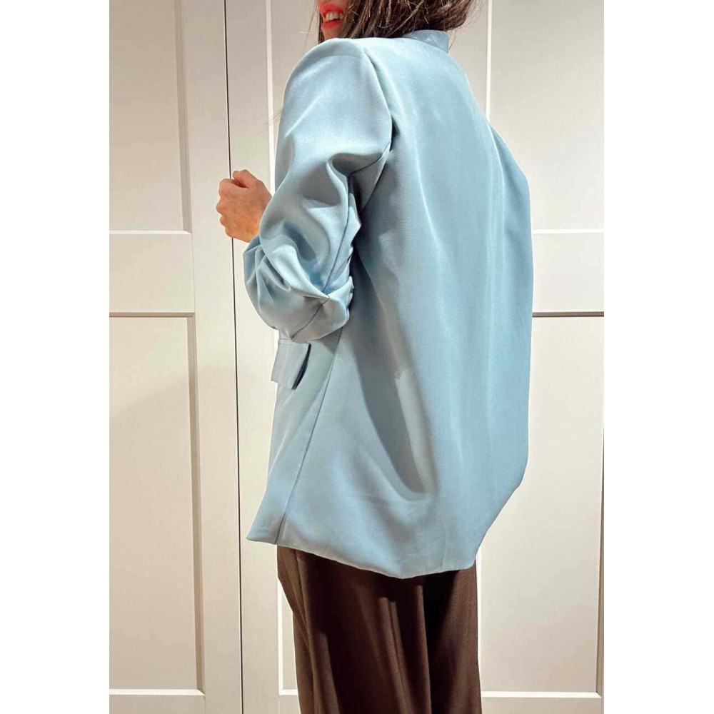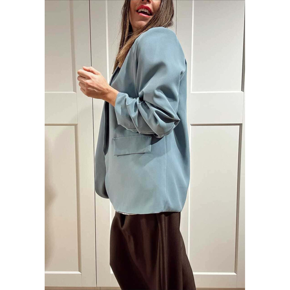 - Blazer básico de mujer con detalle de frunces en las mangas.