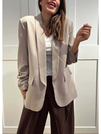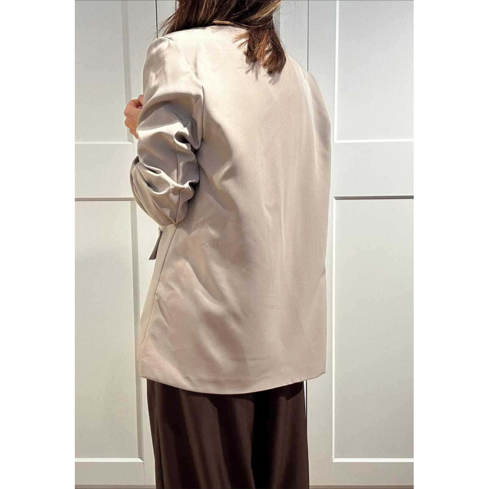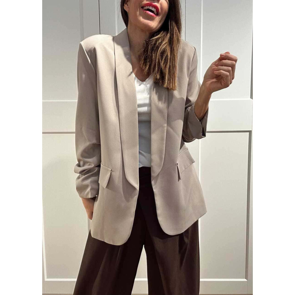- Blazer básico de mujer con detalle de frunces en las mangas.