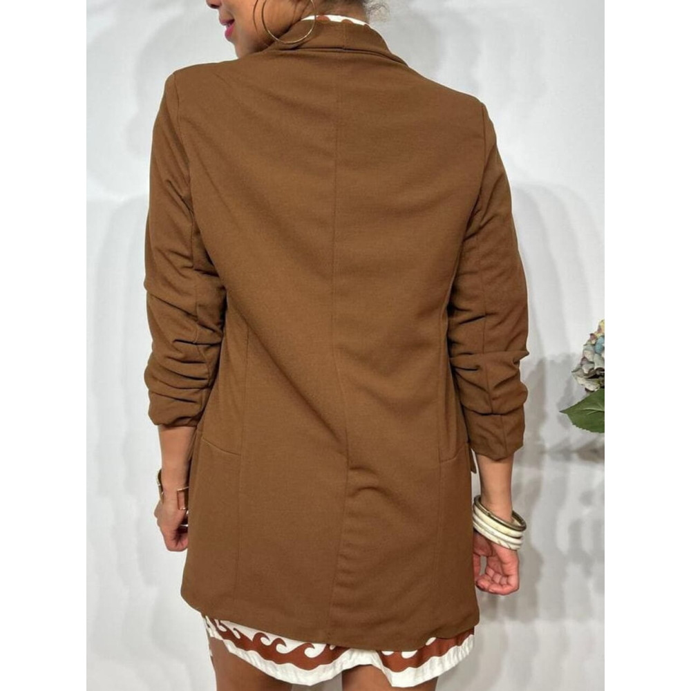 - Blazer básico de mujer con detalle de frunces en las mangas.
