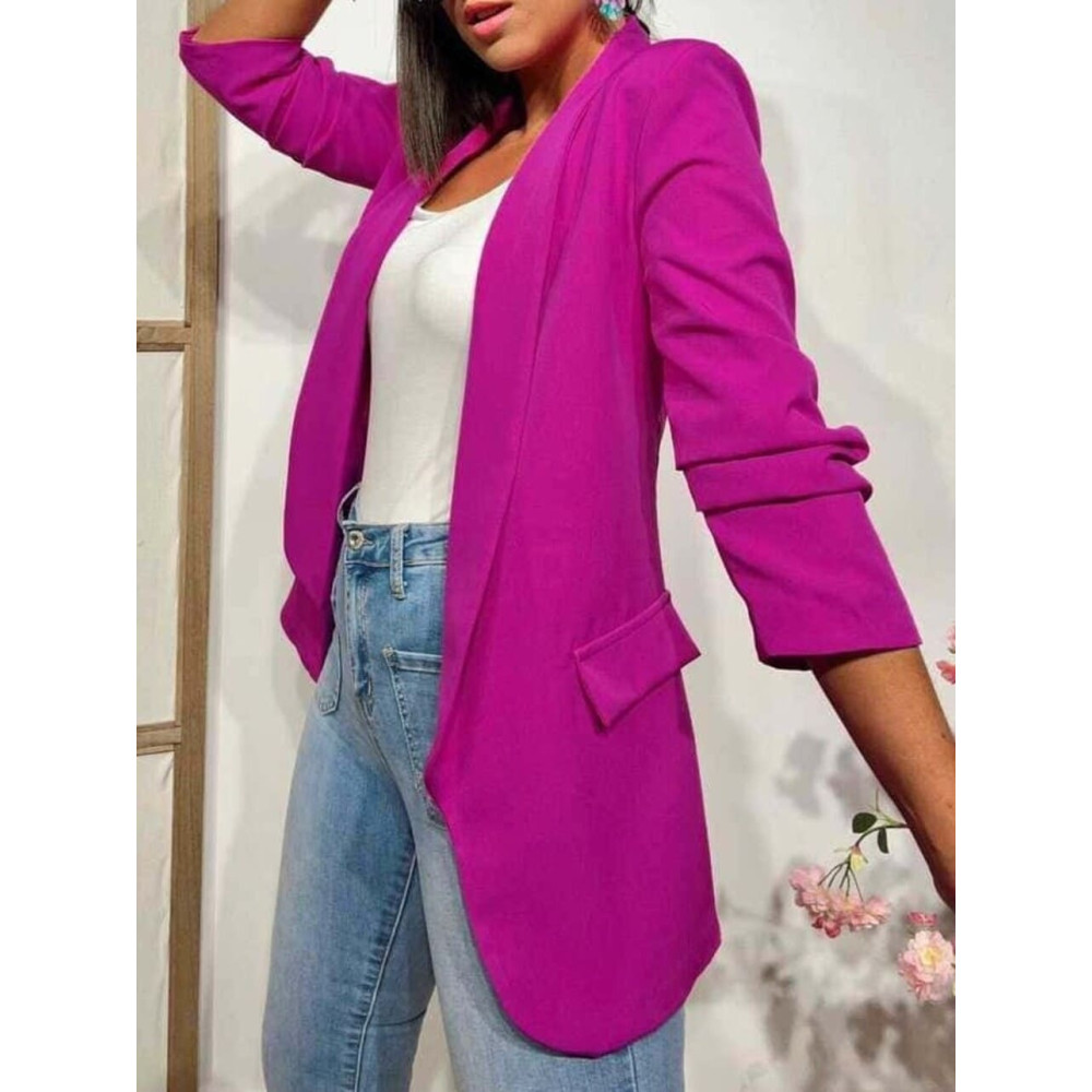 - Blazer básico de mujer con detalle de frunces en las mangas.