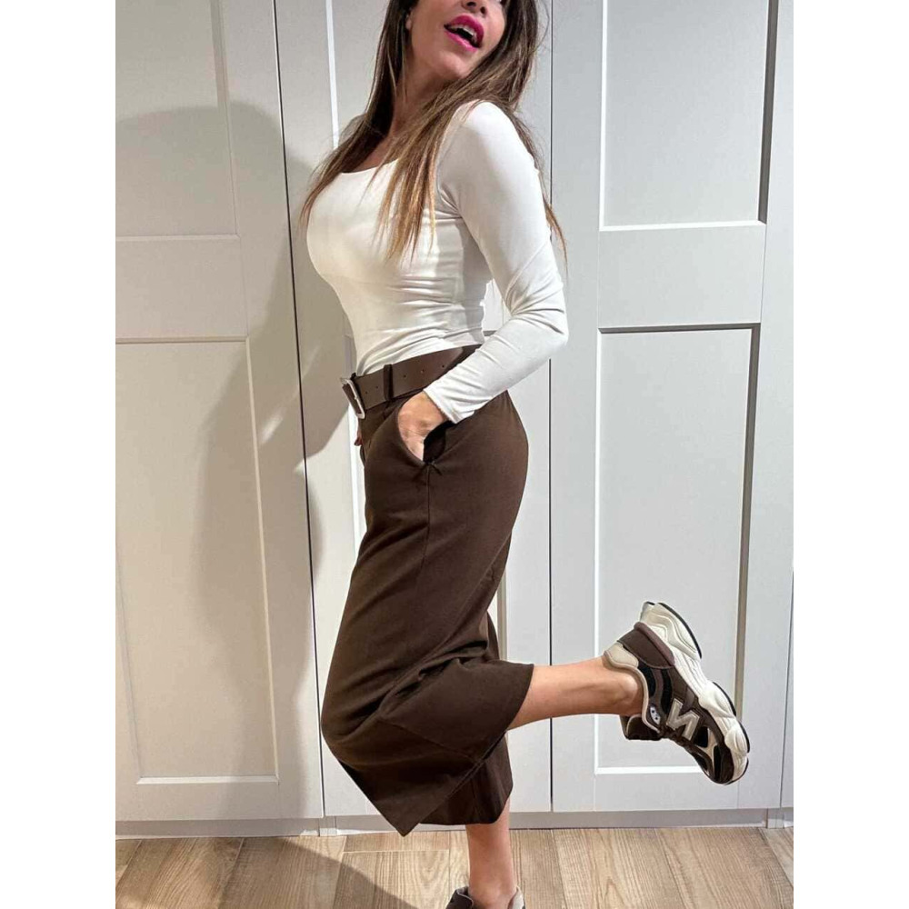 Pantalón Culotte con Cinturón LYMAN Marrón