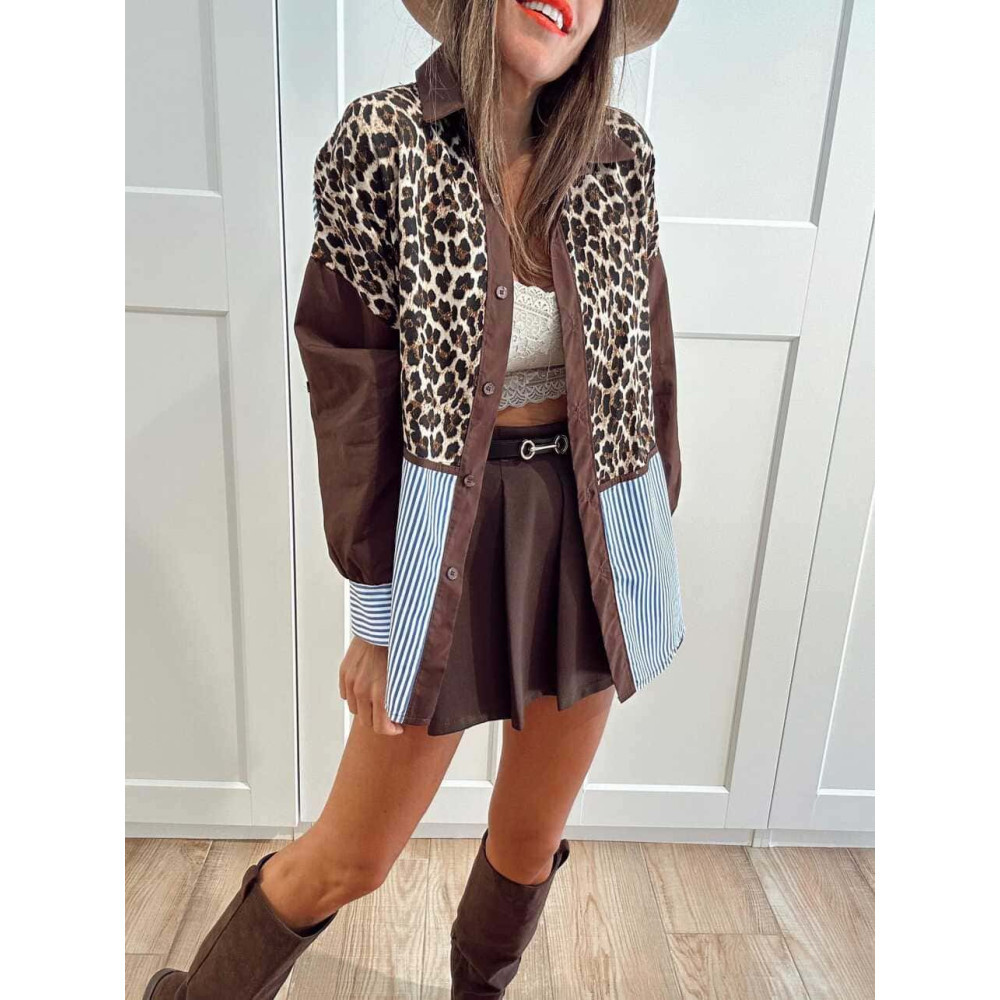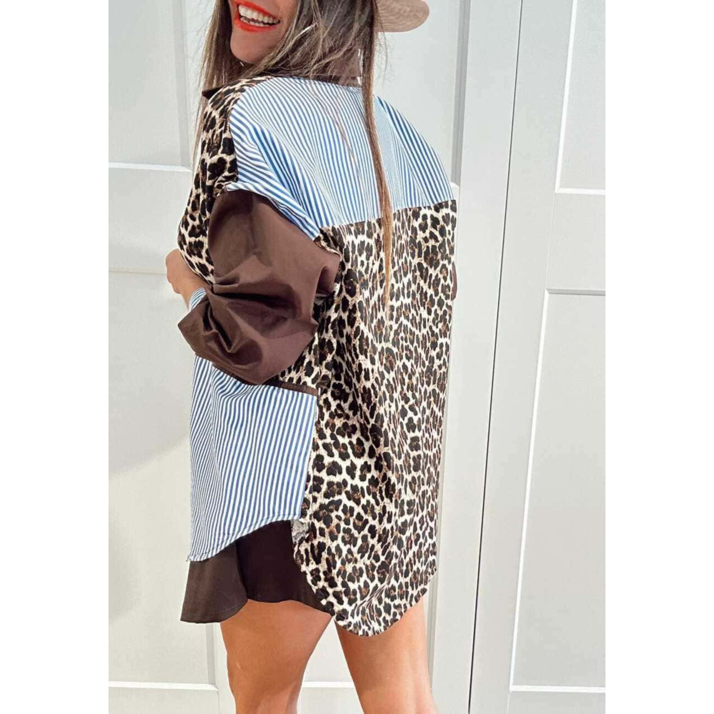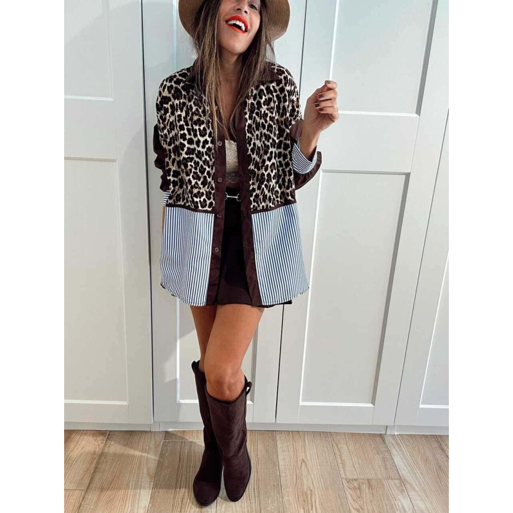 - Camisa de mujer que fusiona el atrevido estampado animal print con un vibrante estampado rayas blanco/azul ❤