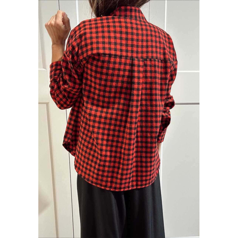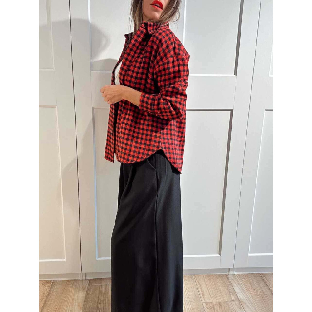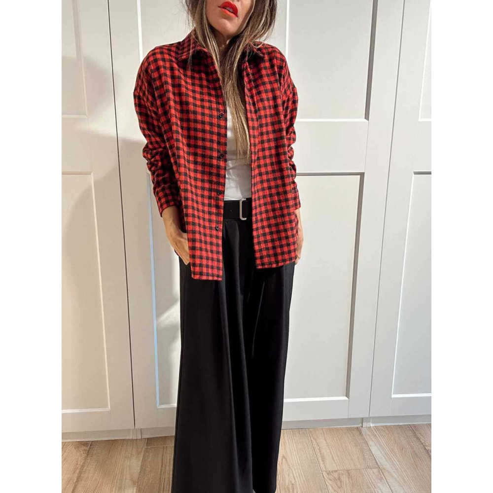 - Camisa estilo leñador con estampado cuadros en combinación rojo/negro.