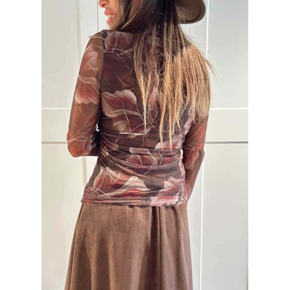 Cuerpo Tul Estampado Hojas AETHER Marrón