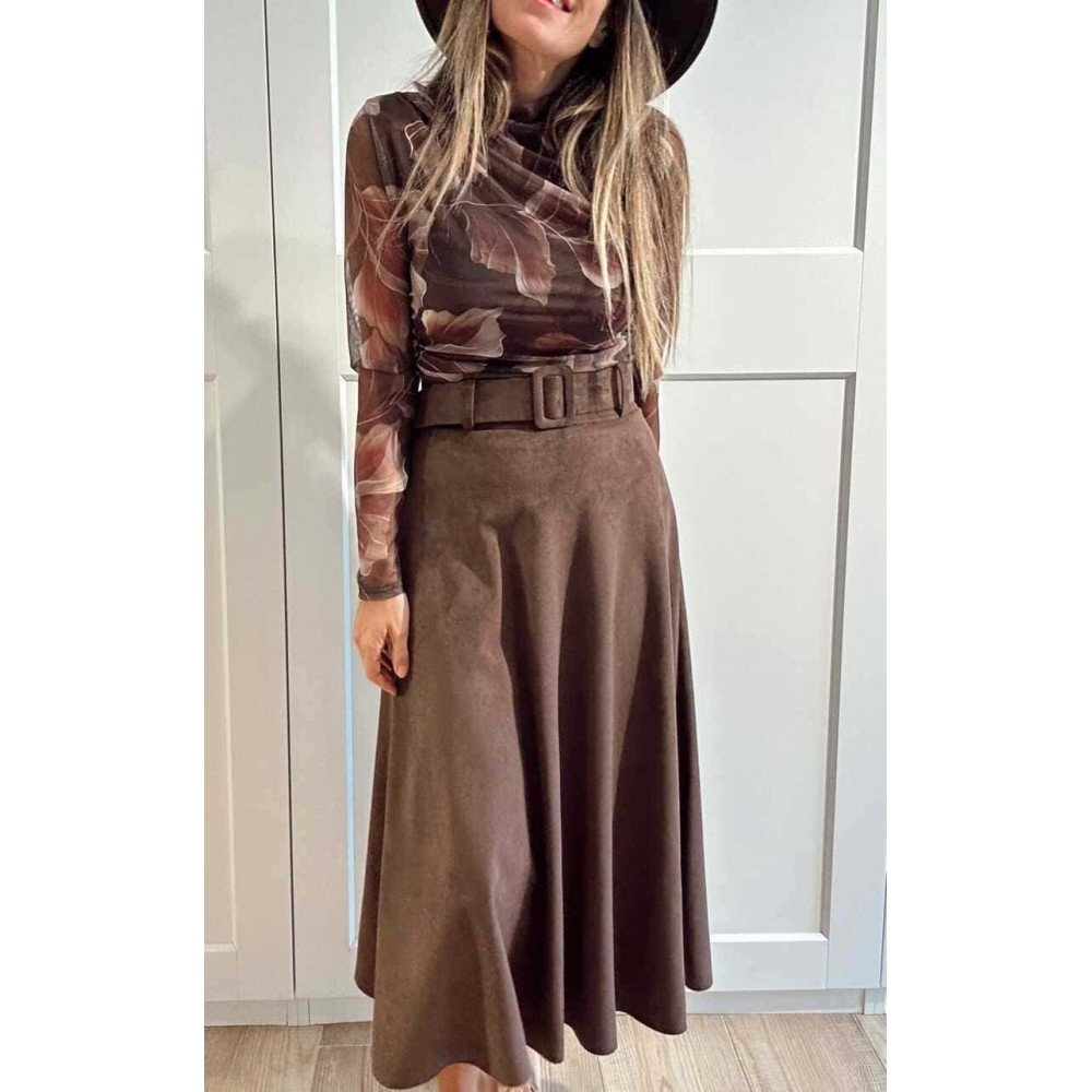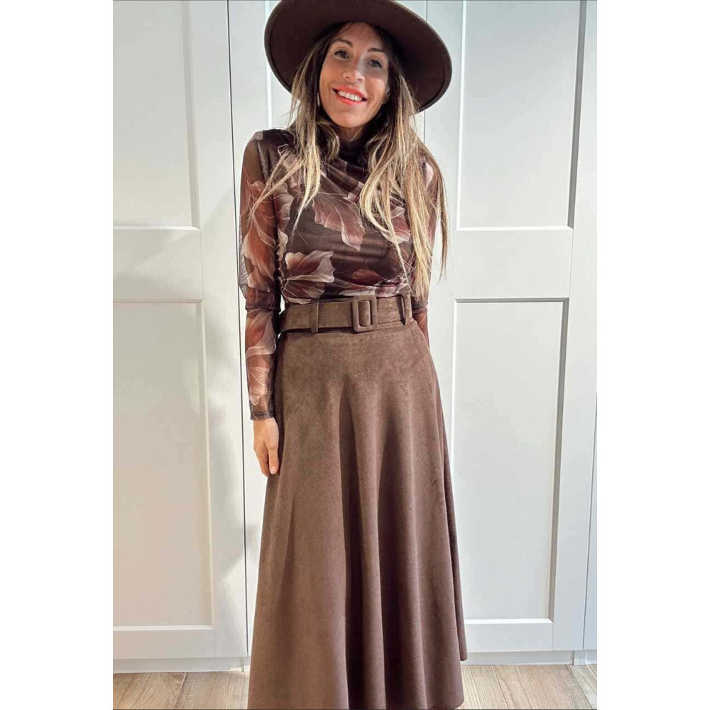 Falda Efecto Ante con Cinturón SAUVRA Marrón