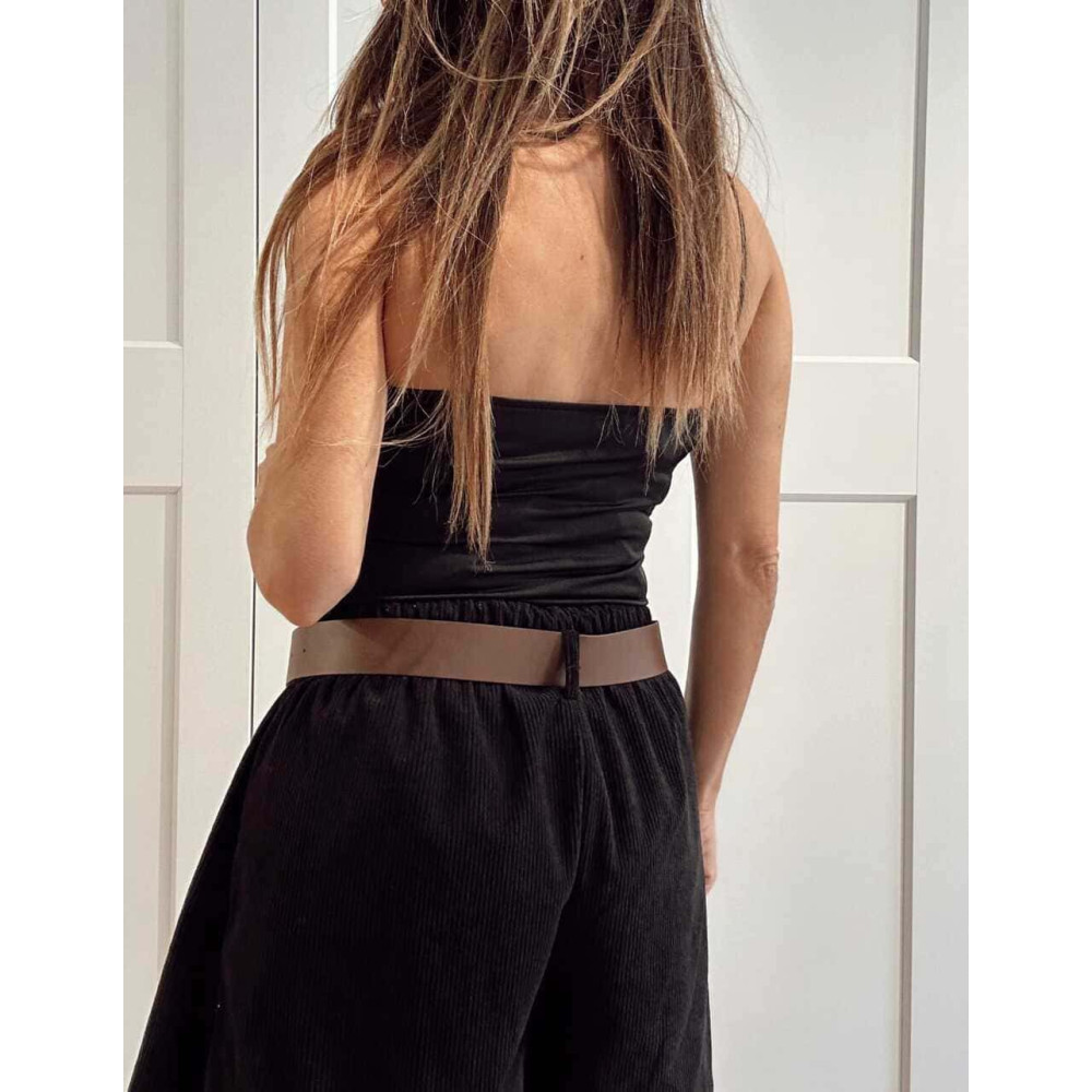 - Escote redondeado en delantero y recto en la espalda con acabado elástico.