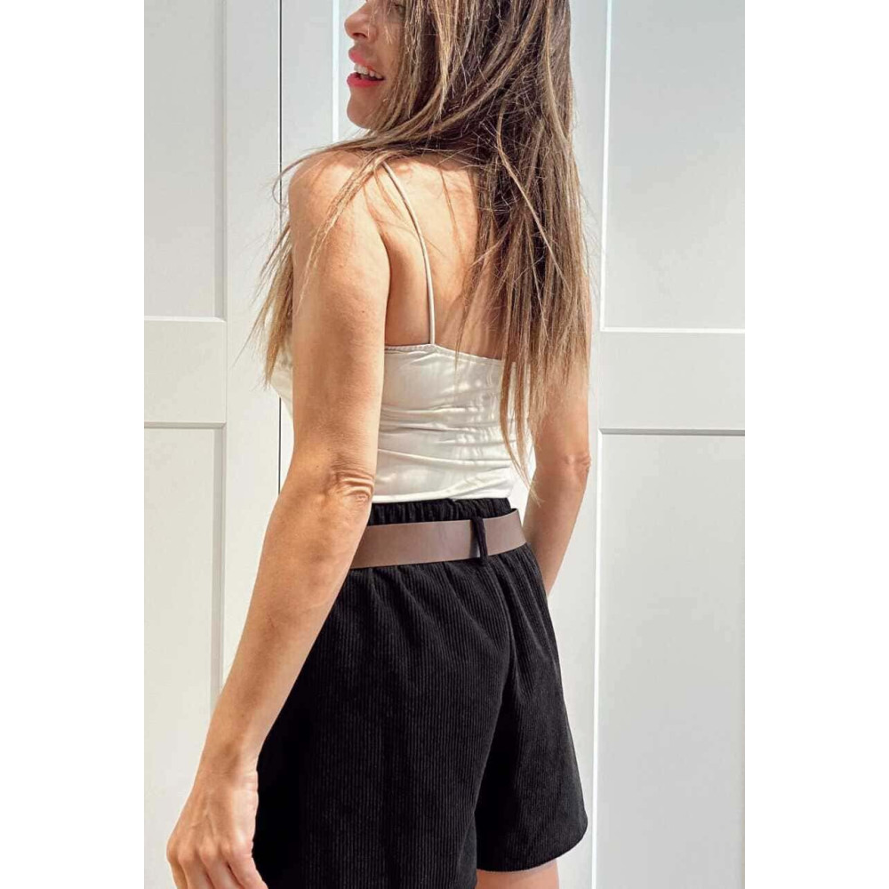 - Escote redondeado en delantero y recto en la espalda con acabado elástico.