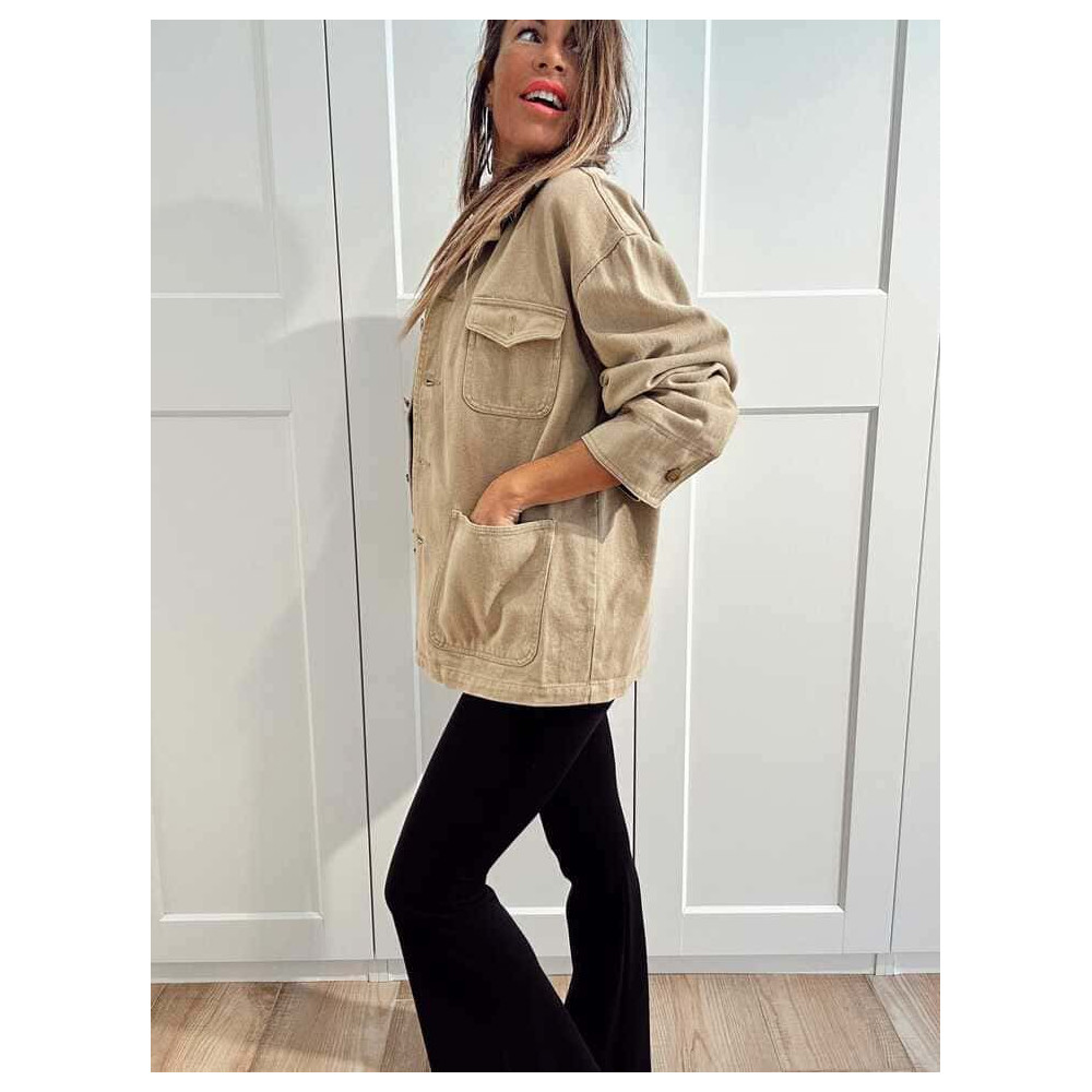 Sobrecamisa Vaquera Terminaciones Efecto Piel TAVINA Taupe