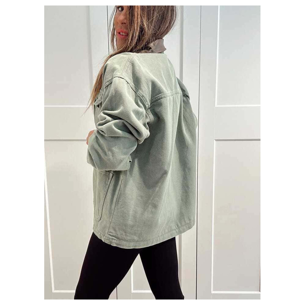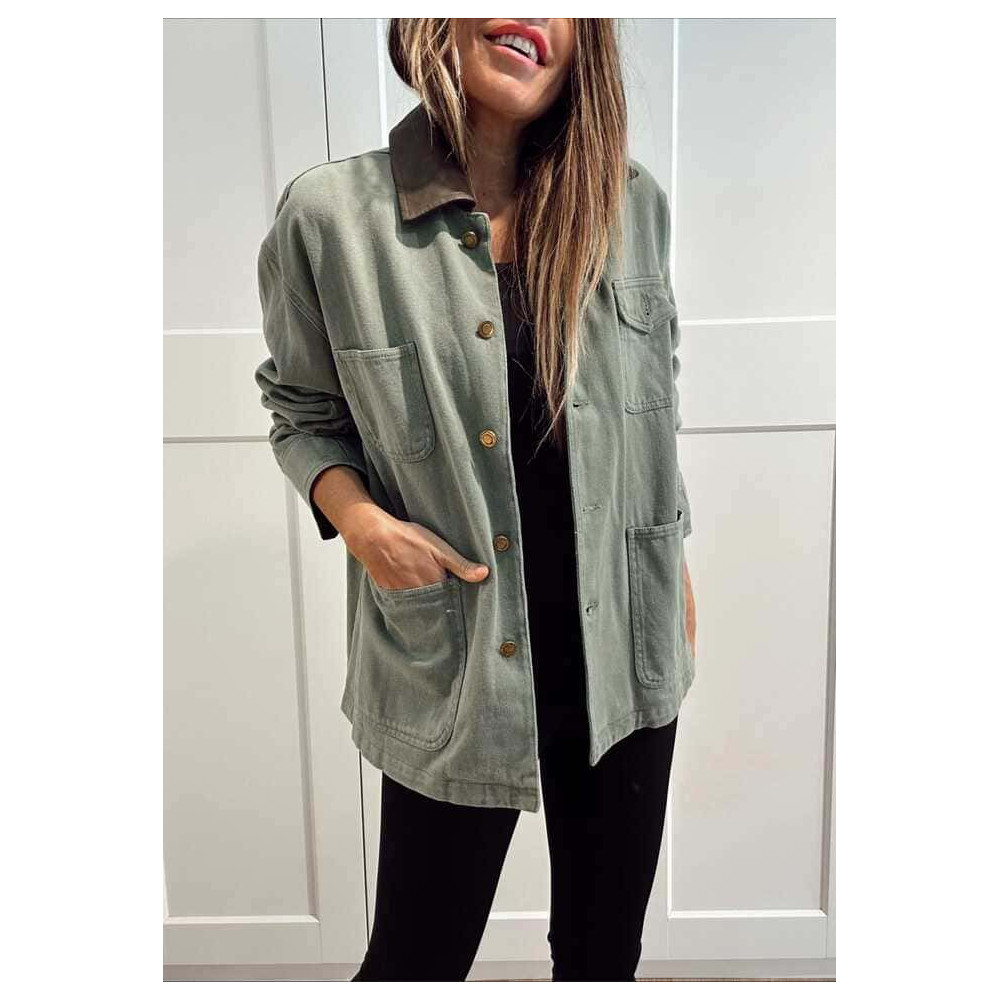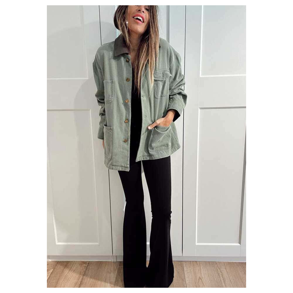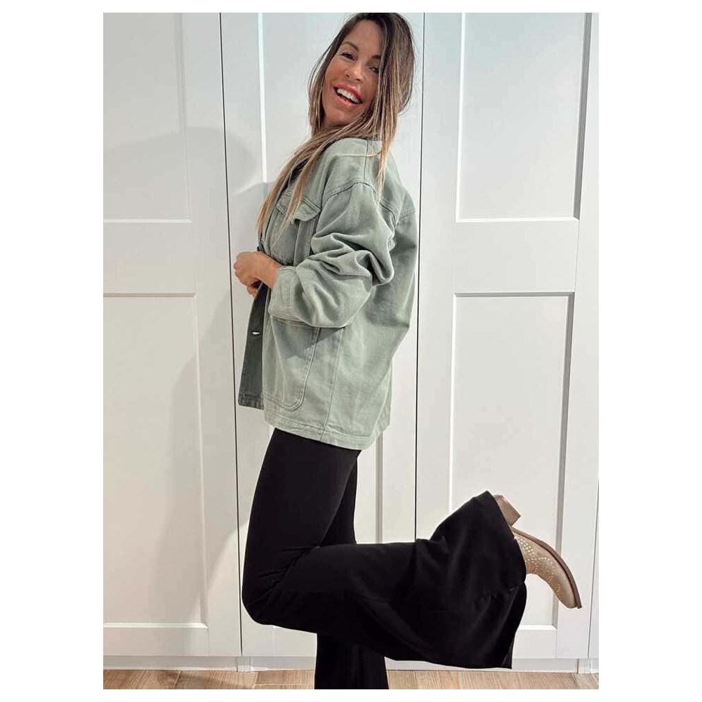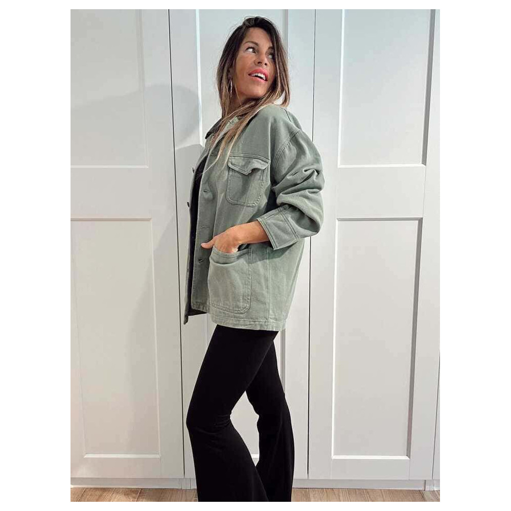 Sobrecamisa Vaquera Terminaciones Efecto Piel TAVINA Verde Ceniza