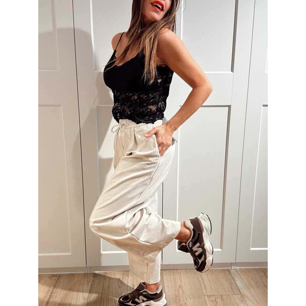 Pantalón Barrel Cintura Elástica NORVYN Beige