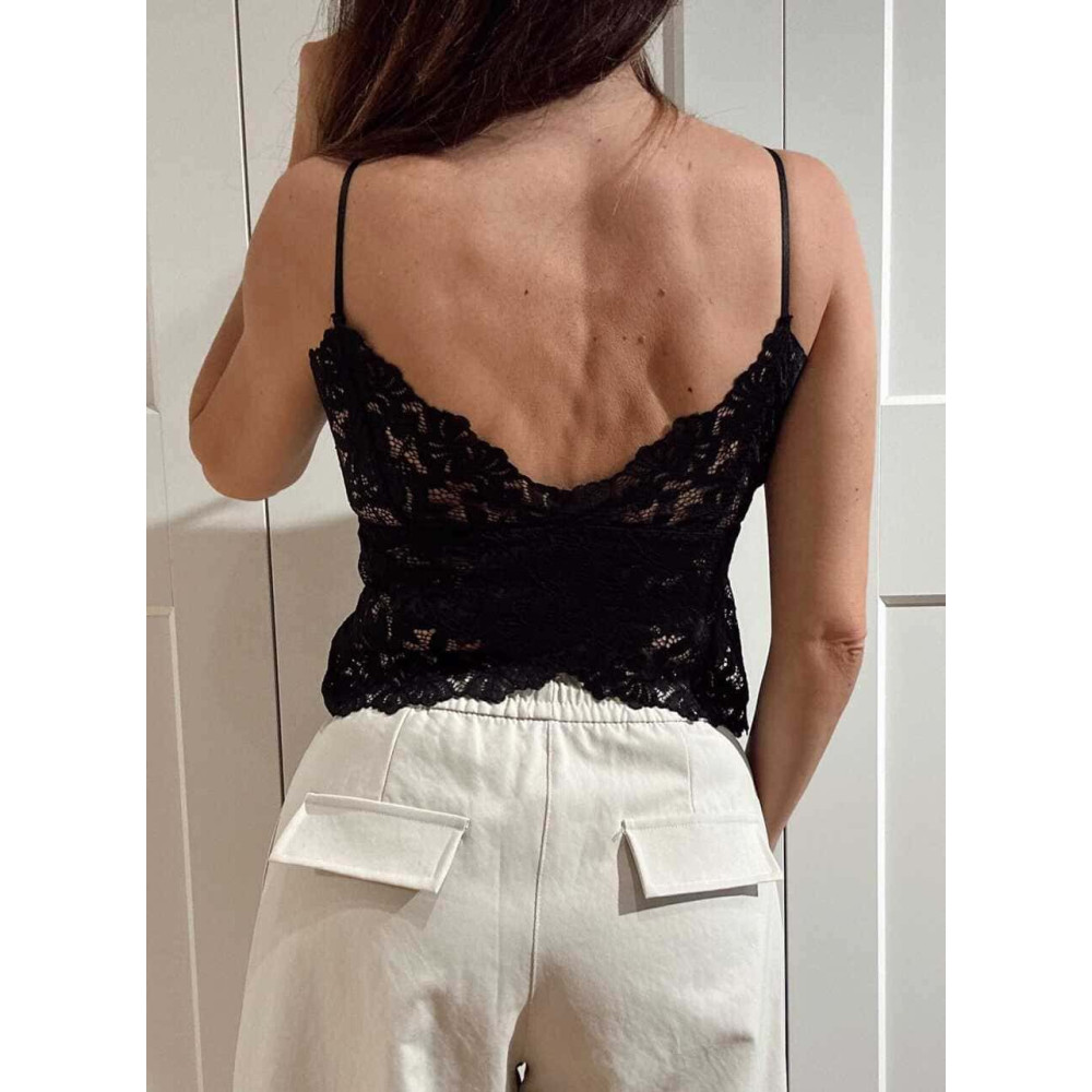 - Top de mujer confeccionado en encaje suave con acabado elástico.