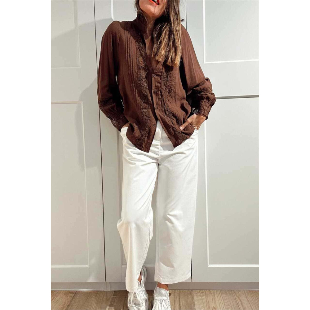 Éstas son aprox. la equivalencia de tallas y las medidas de la Blusa Romántica Jaretas JOBELLE Marrón: