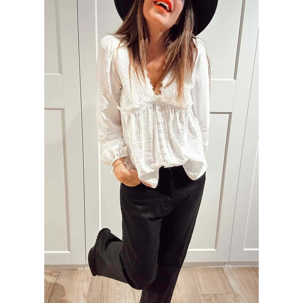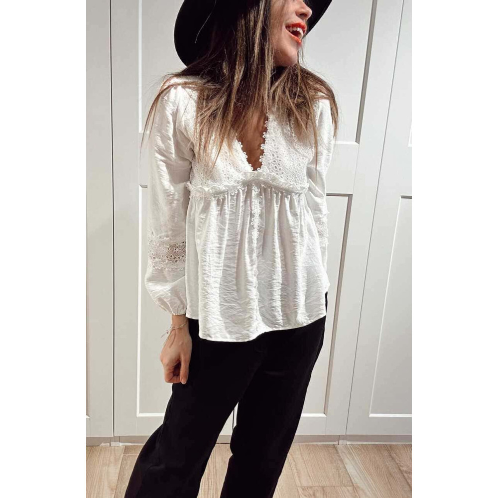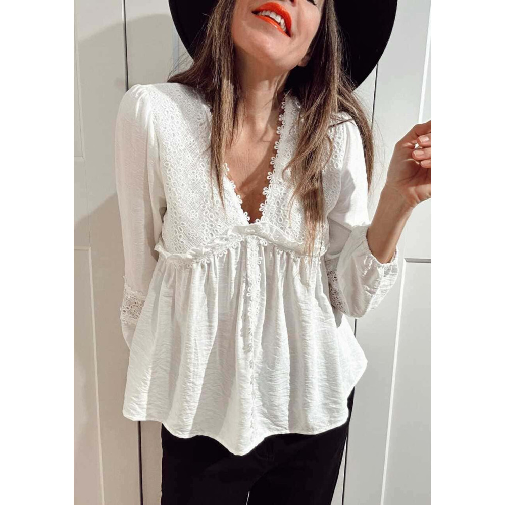 Blusa Romántica Bordado-Perforado MANON Blanco