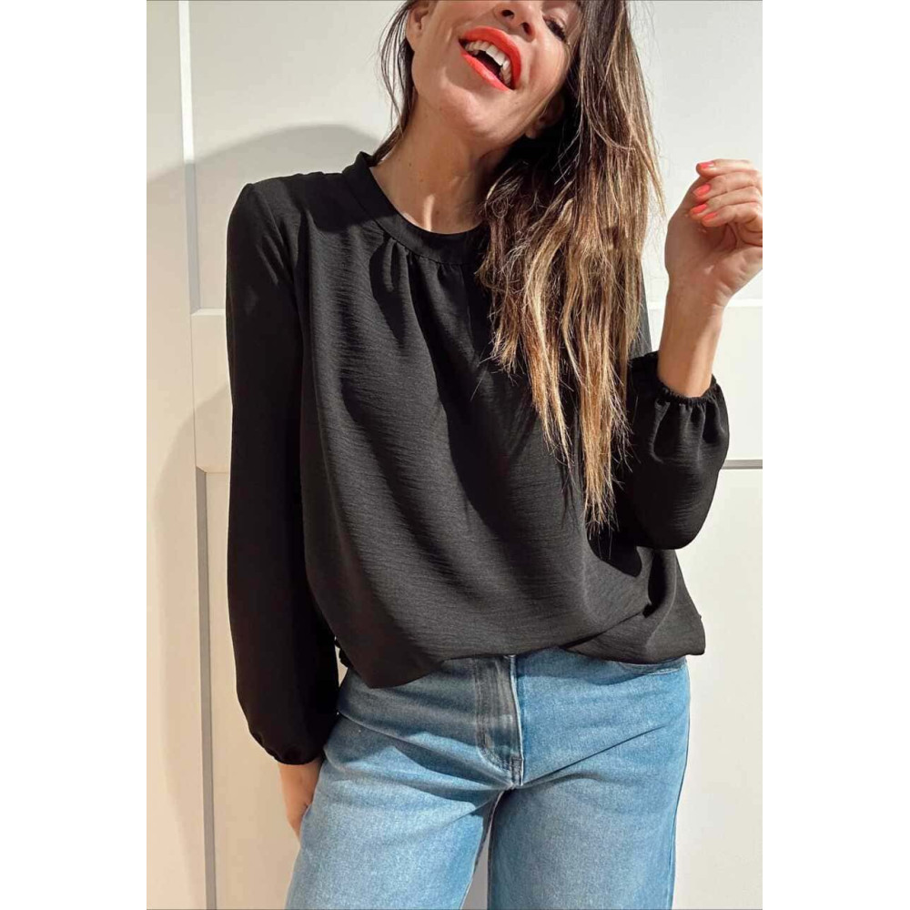 Blusa Fluida Abullonada VOLIANNE Negro