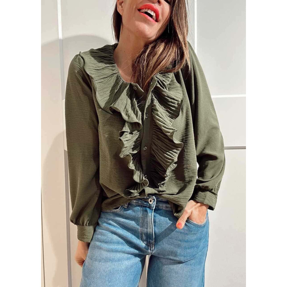 Blusa Fluida Chorreras LULIANNE Verde Militar