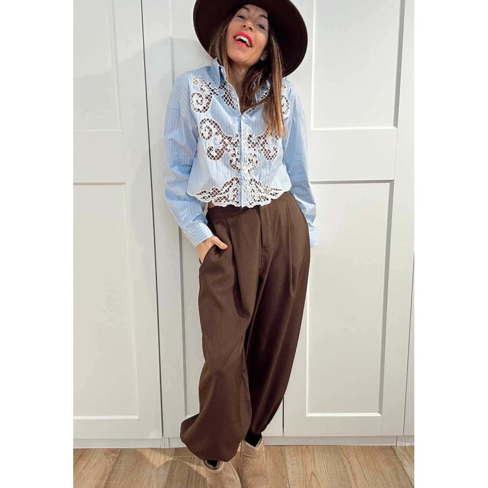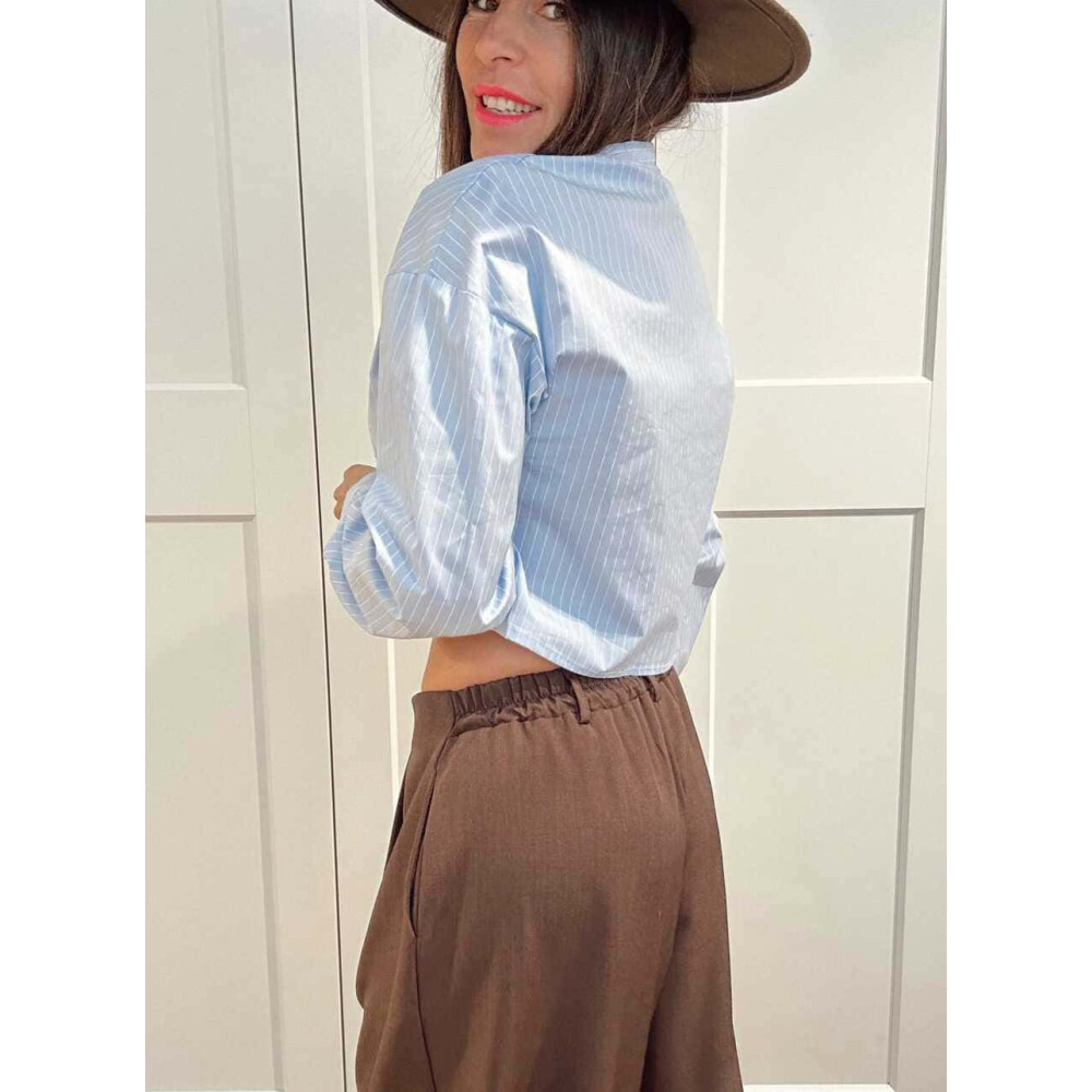 - Camisa cropped con estampado rayas en combinación azul celeste/blanco.