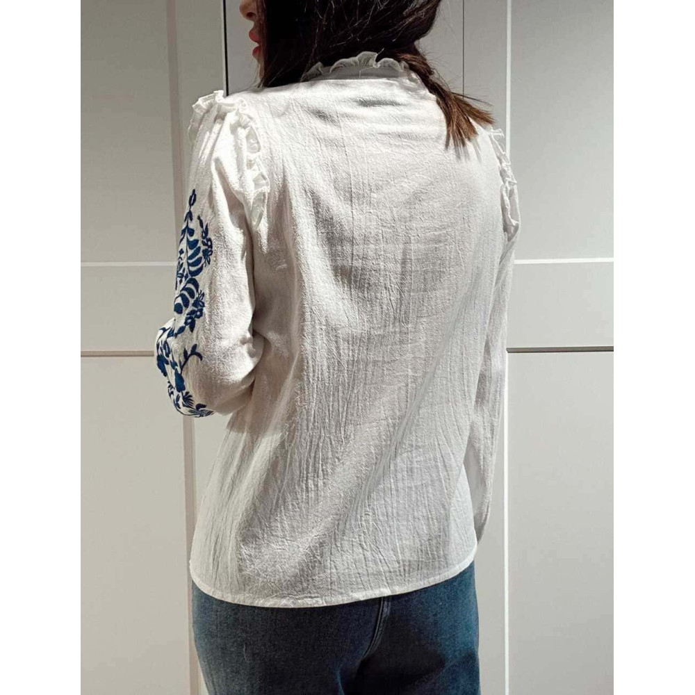 Blusa Rústica Bordados WONSEO Blanco/Marino