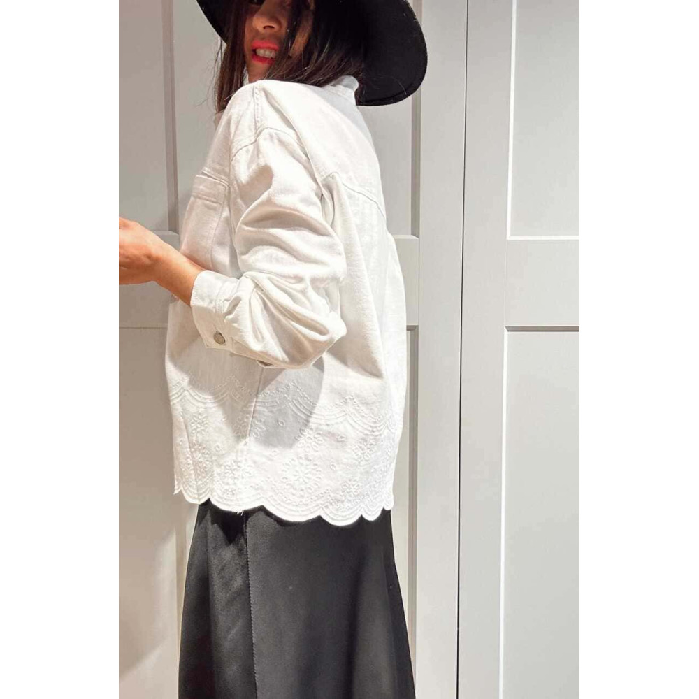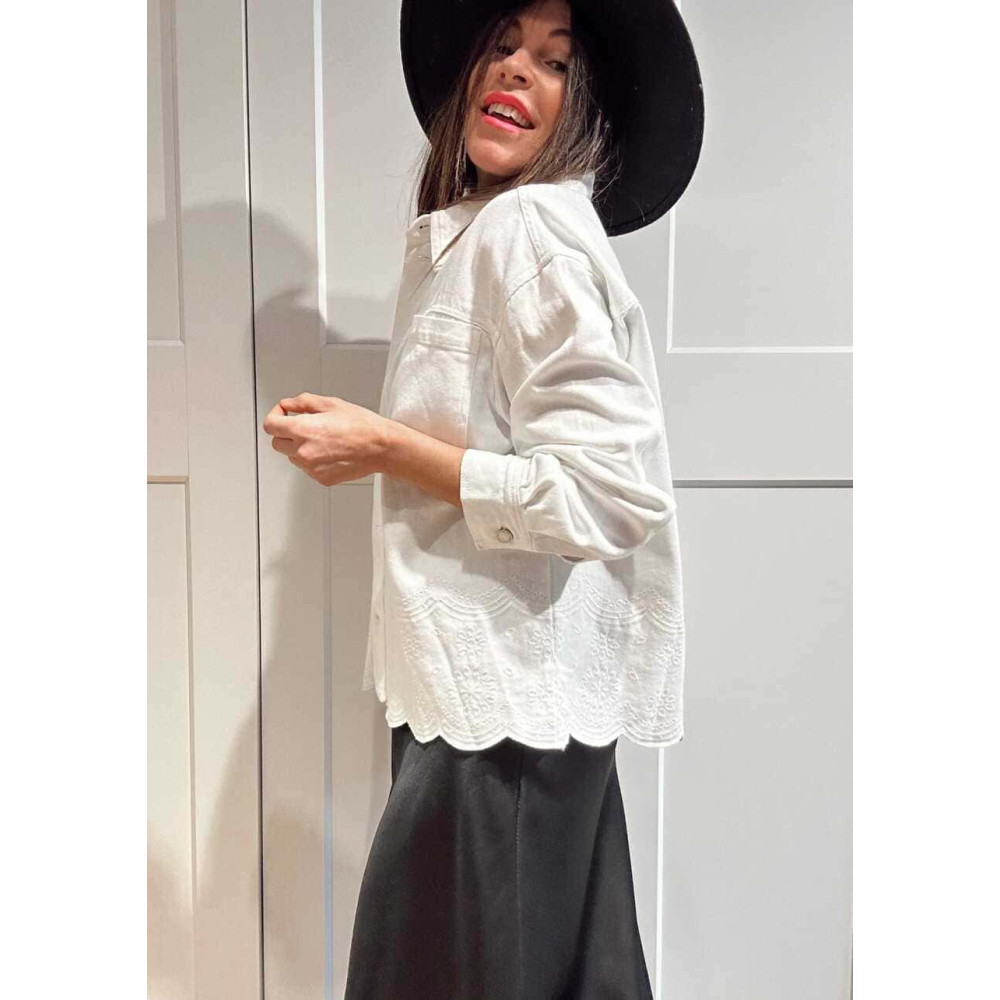 - Sobrecamisa de mujer con bajo festoneado y detalles bordados a tono.