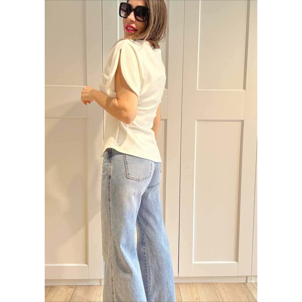 Cuerpo Asimétrico Manga Abullonada TOURAG Blanco