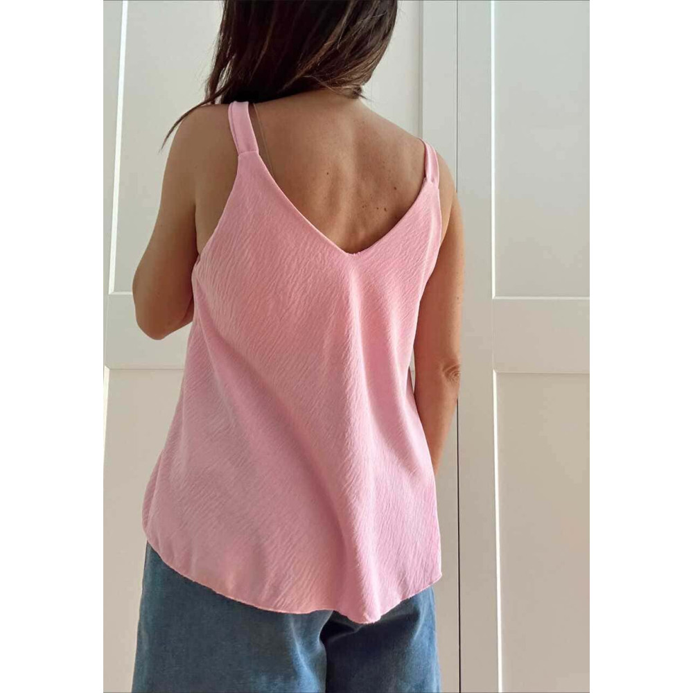 - Top de mujer corte evasé con escote pico en delantero y espalda.