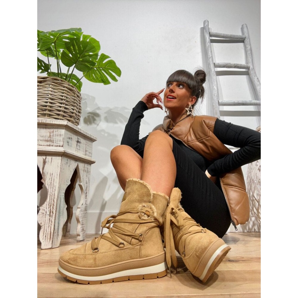 - Bota tipo apre ski con interior forrado de pelo sintético a tono.