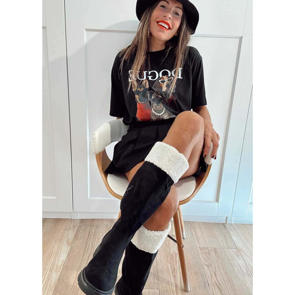 - Bota alta de mujer con aplique de borreguito en el tope de la caña.