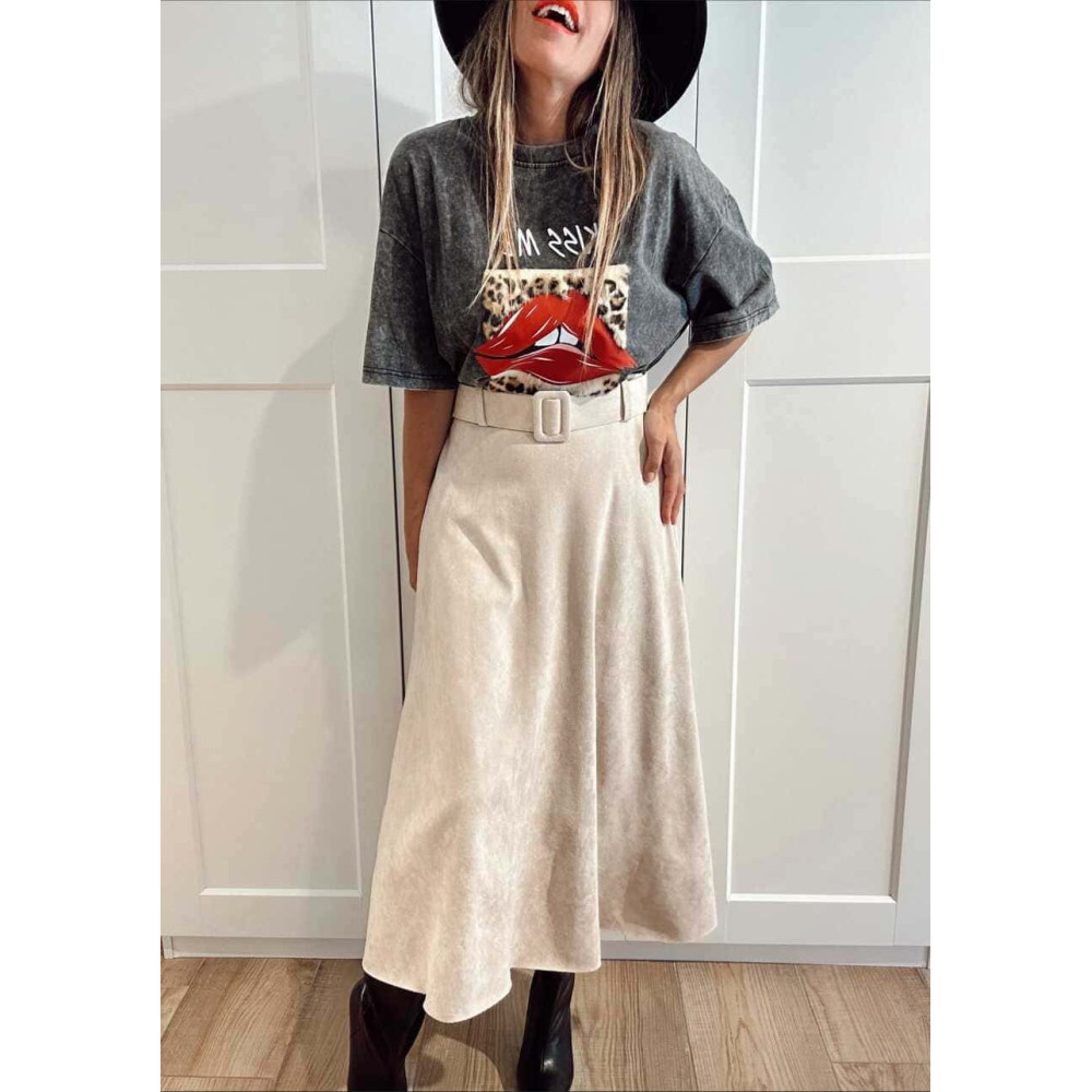 Falda Efecto Ante con Cinturón SAUVRA Beige