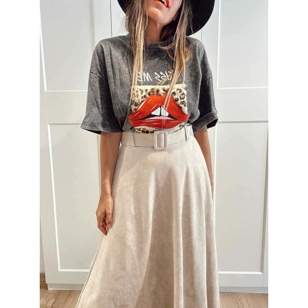 Camiseta Oversize KISS ME OR I´M GONE Gris