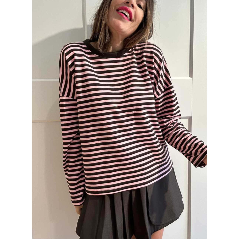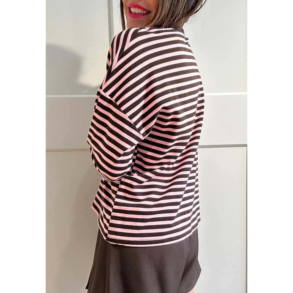 Camiseta Rayas Manga Larga RAYIANNA Marrón/Rosa