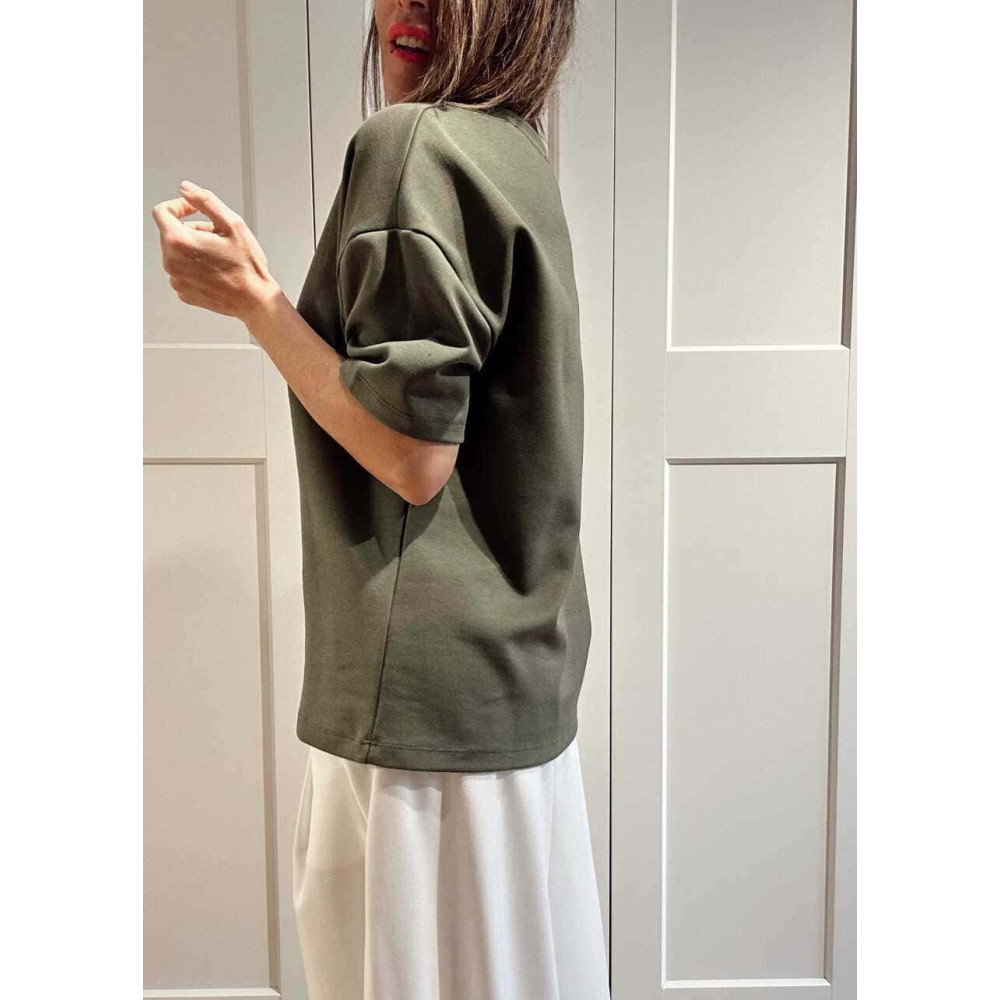 - Camiseta corte oversize con cuello redondo y manga corta.