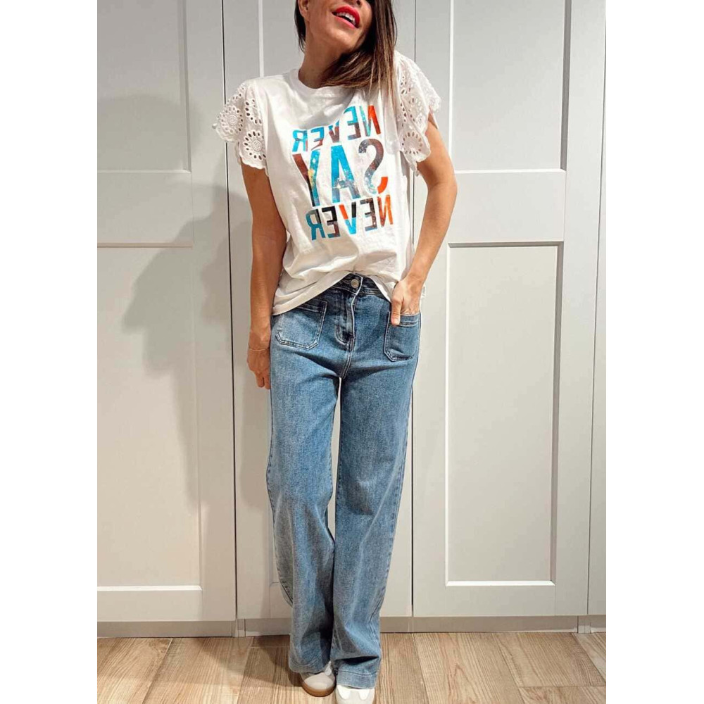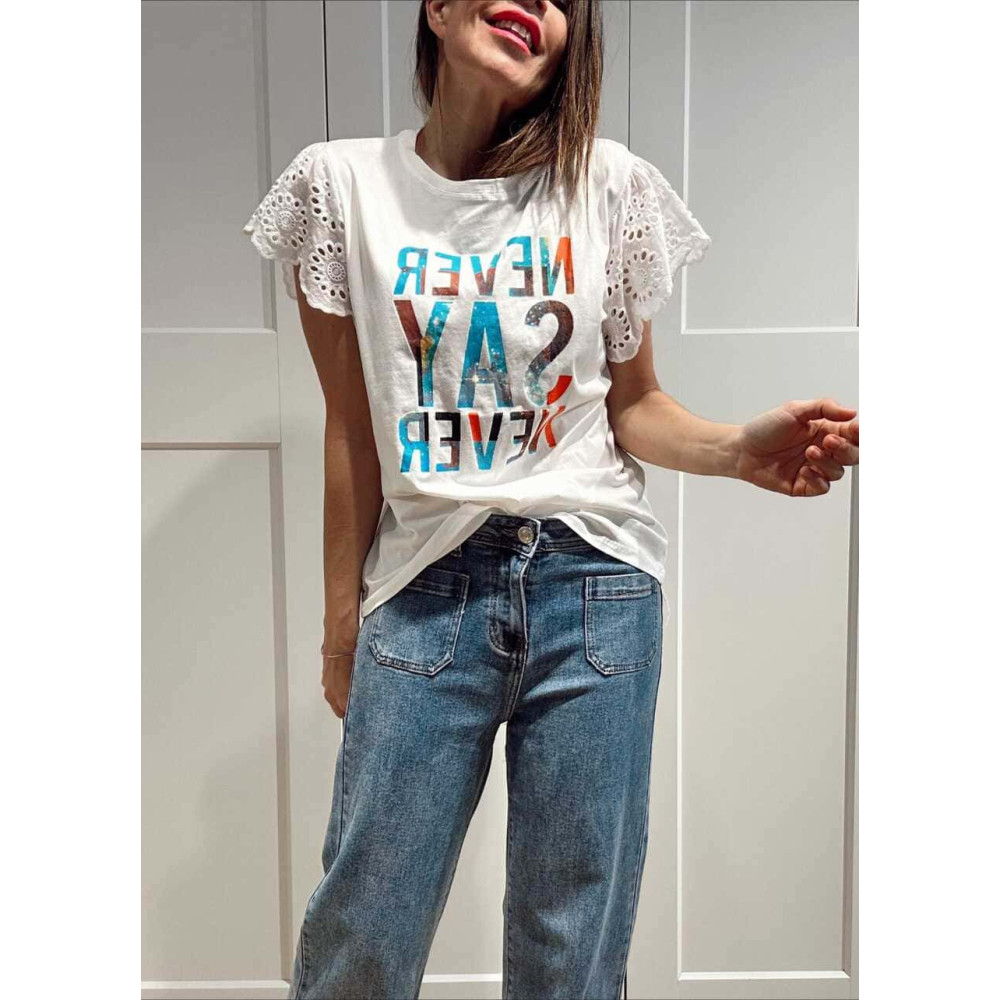 Camiseta Volante NEVER SAY NEVER Blanco