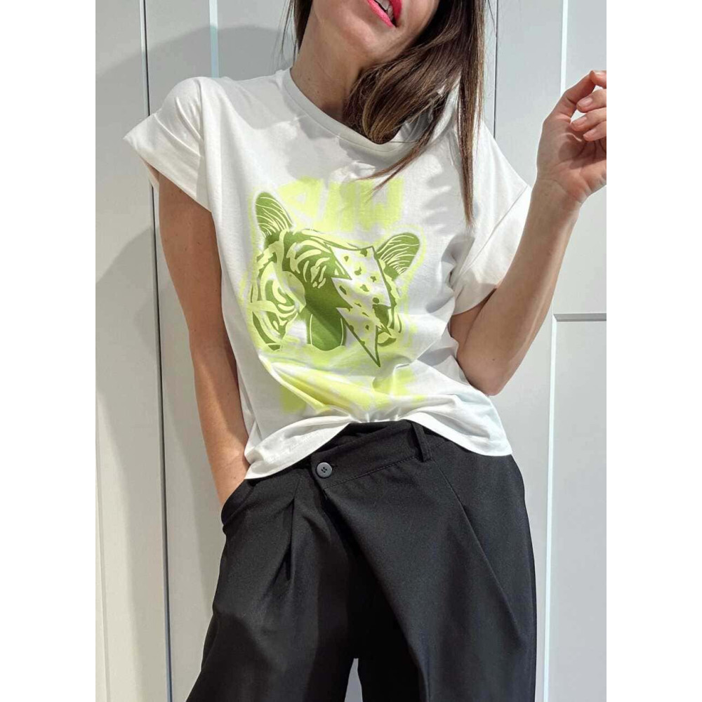Camiseta Algodón WILD THANG Blanco/Amarillo Flúor