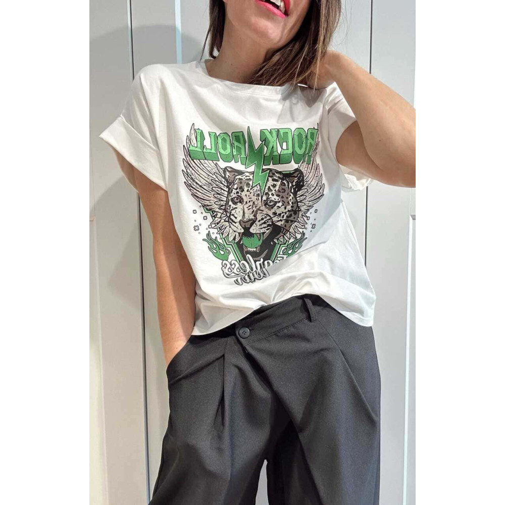 Camiseta Algodón ROCK´N´ROAR Blanco/Verde
