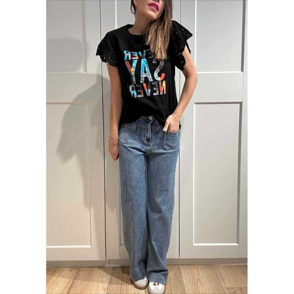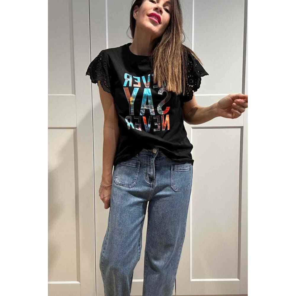 Camiseta Volante NEVER SAY NEVER Negro