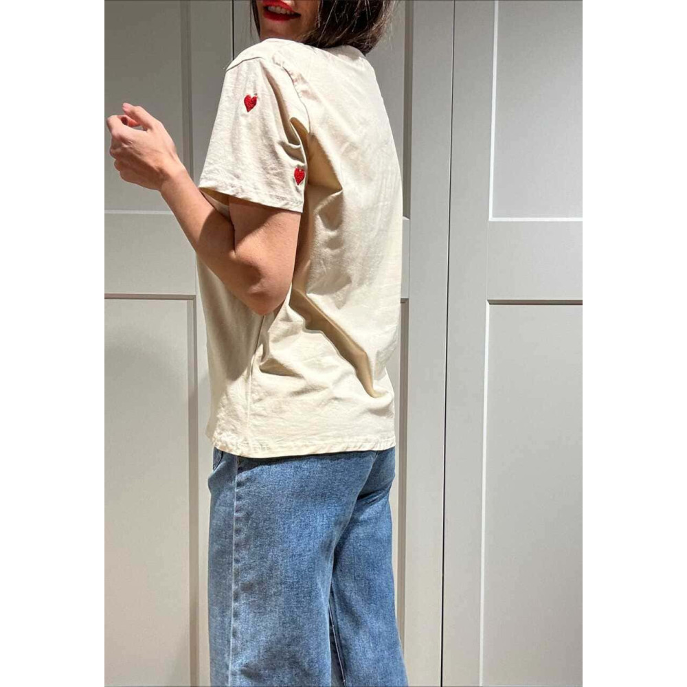 Camiseta Regular Fit Corazones Bordados LOVAK Beige