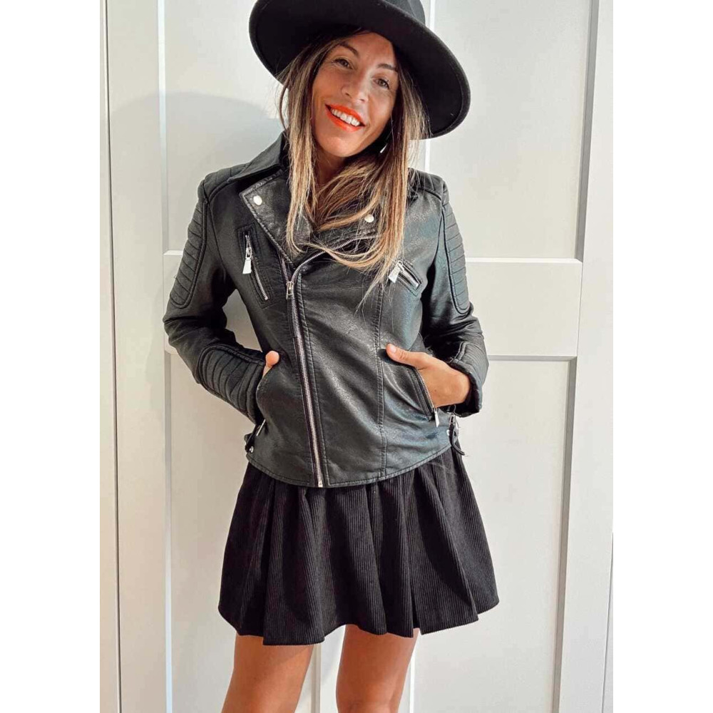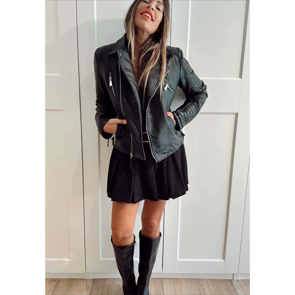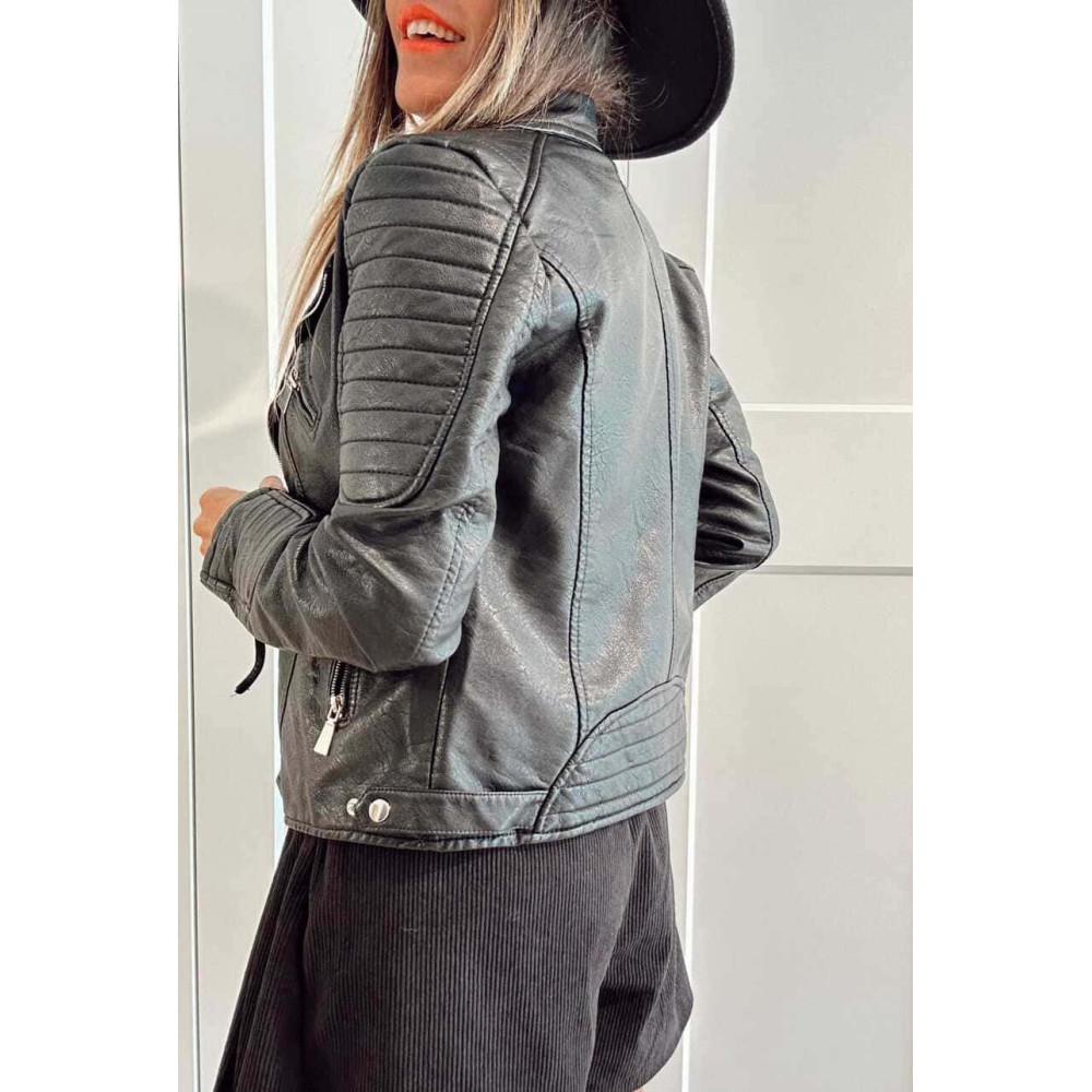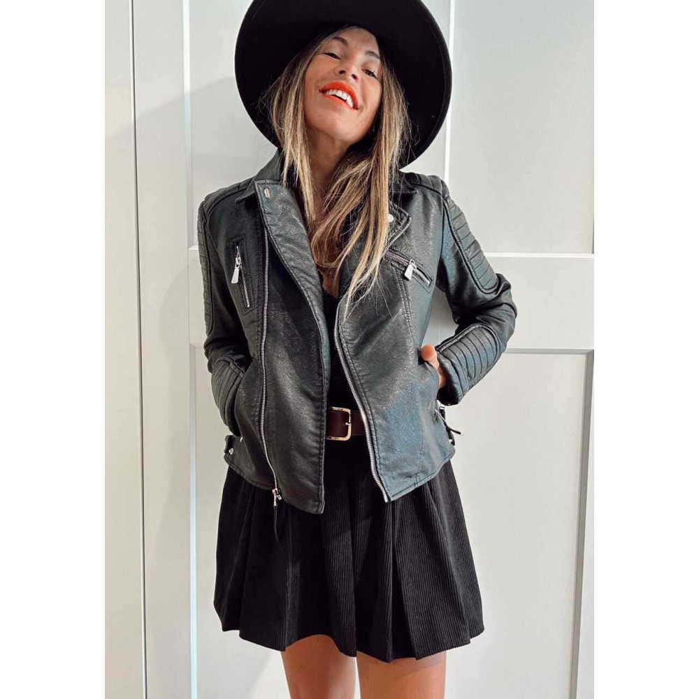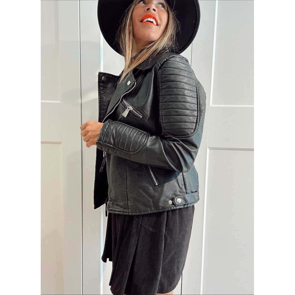 - Cazadora tipo biker con paneles acolchados estilo motero.