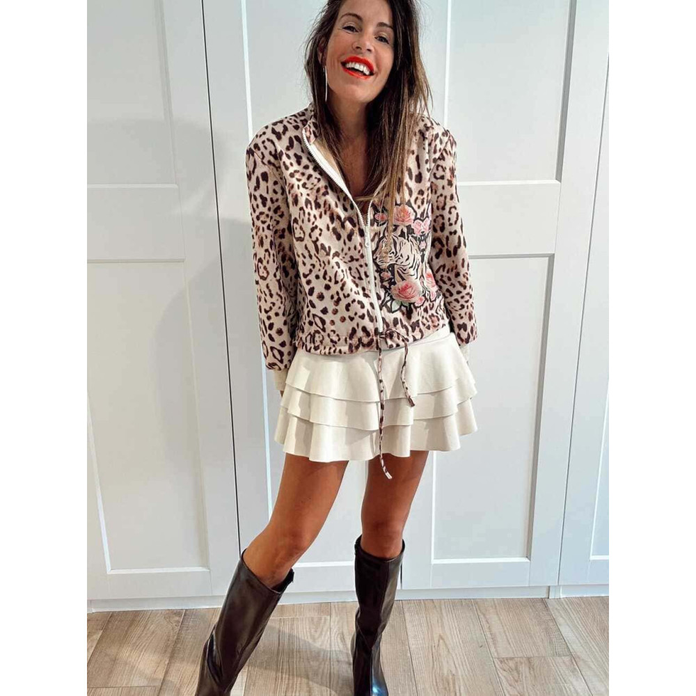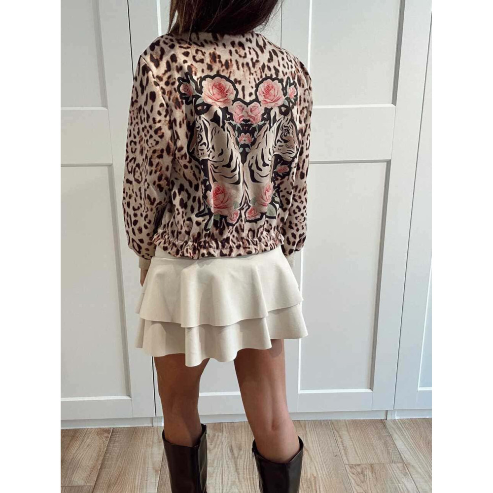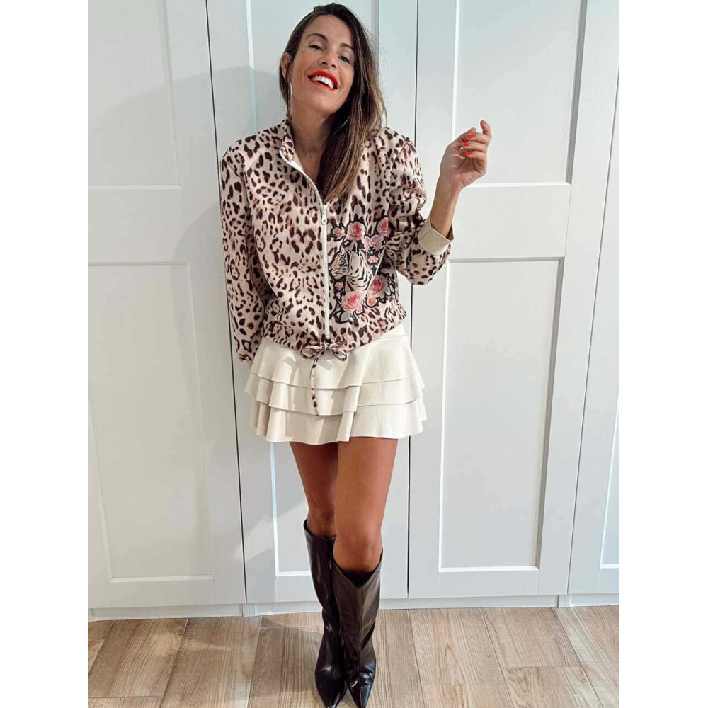- Estampado gráfico con motivo de tigres y rosas.