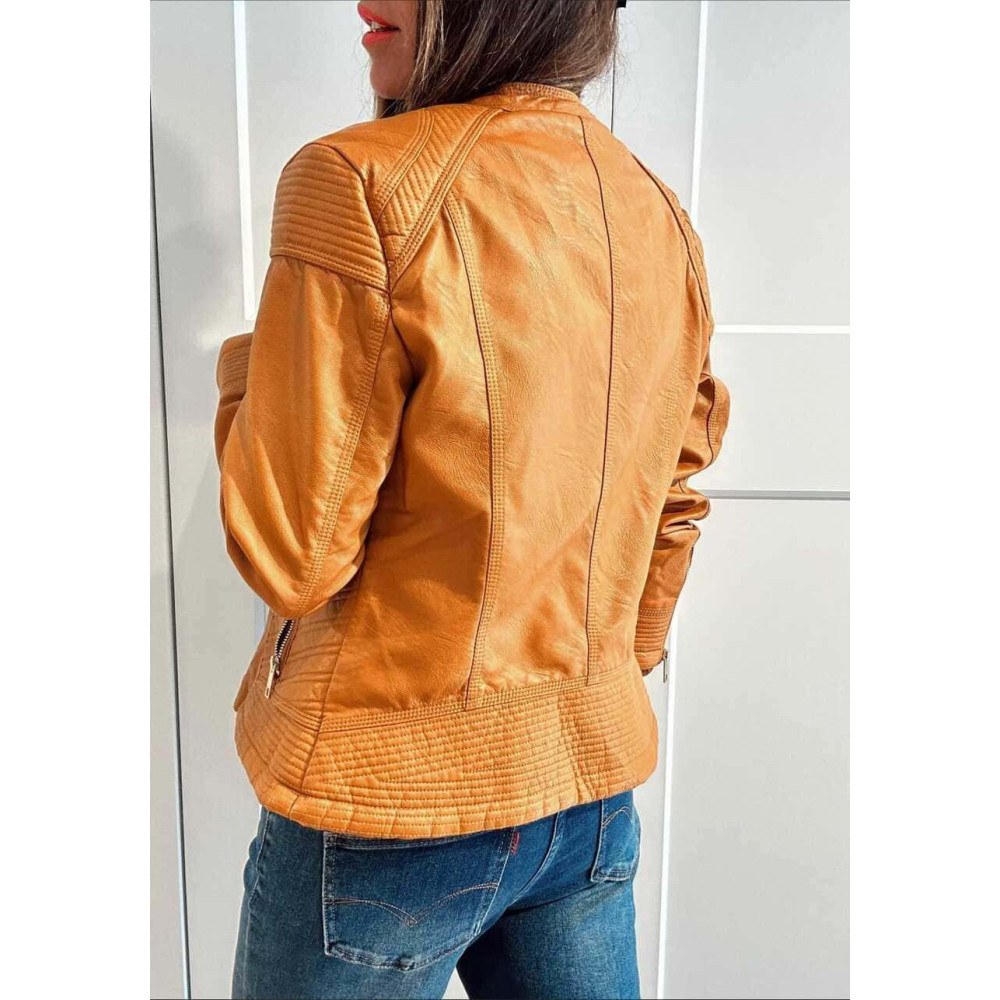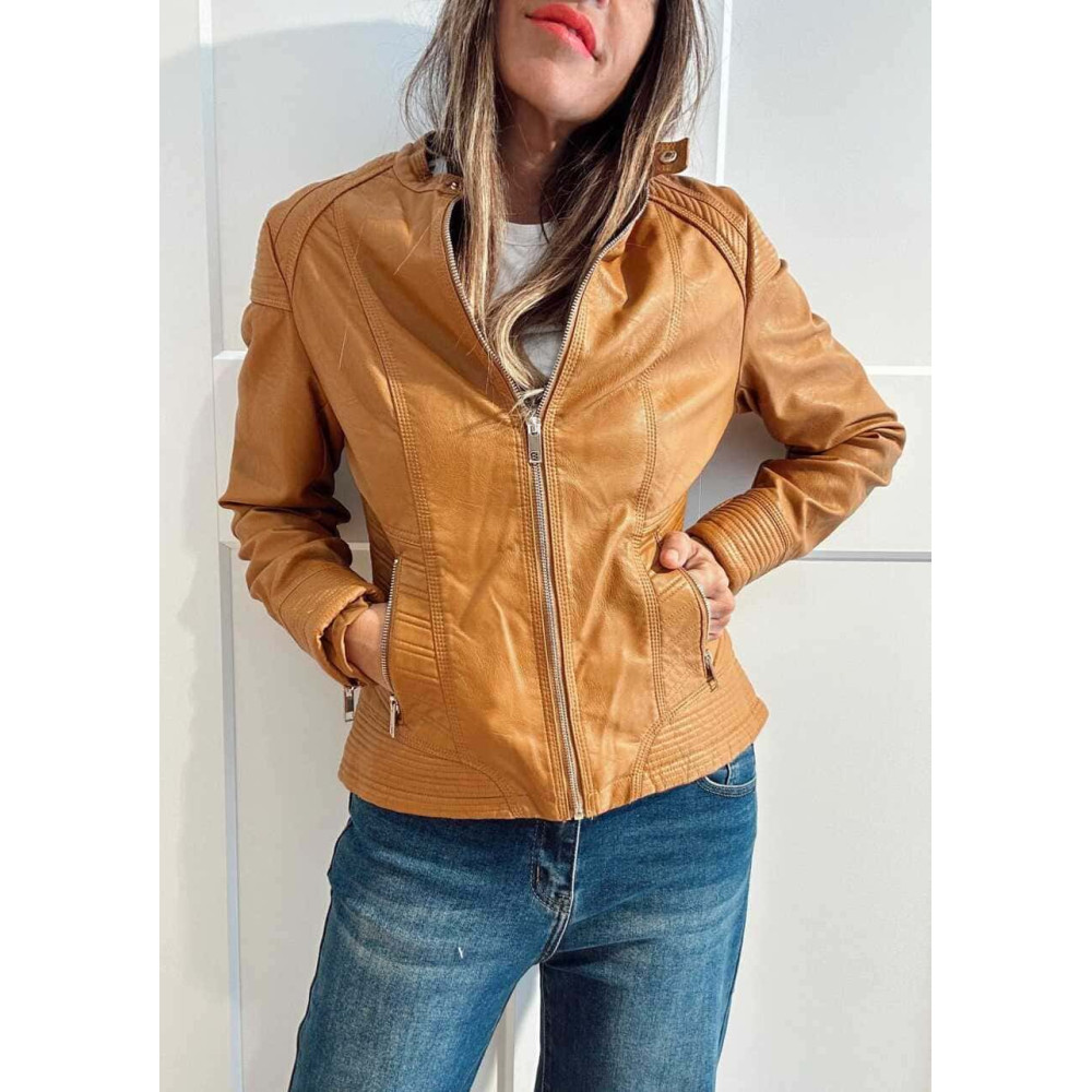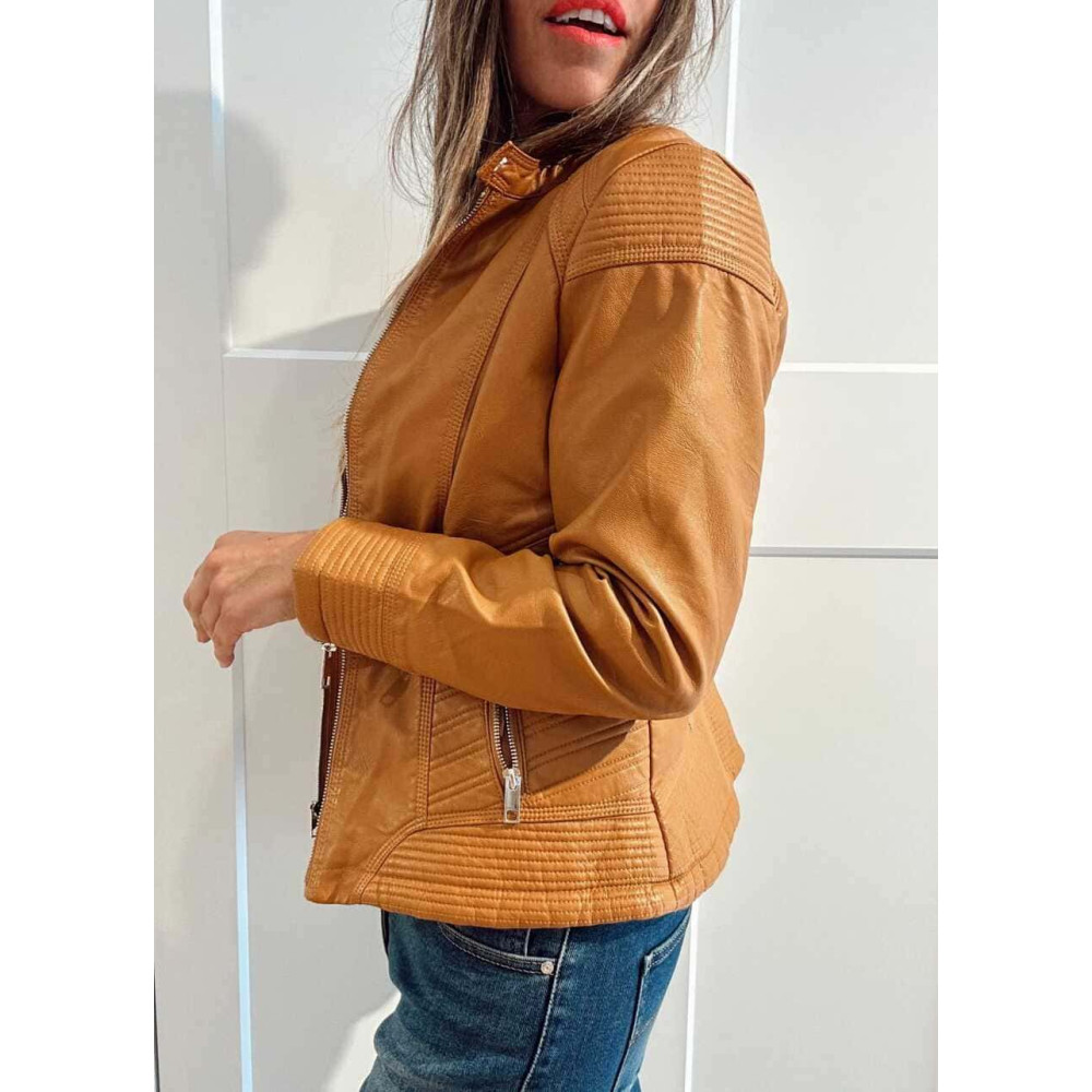 Éstas son aprox. la equivalencia de tallas y las medidas de la Cazadora Biker Polipiel DRAVIA Ocre: