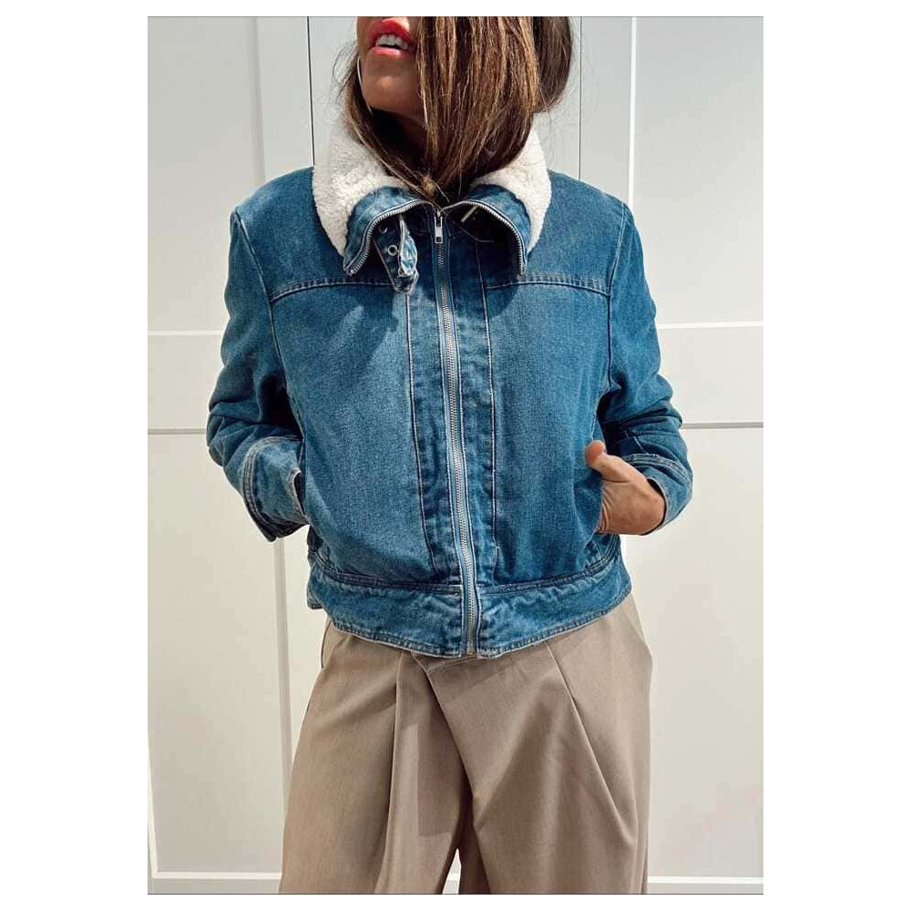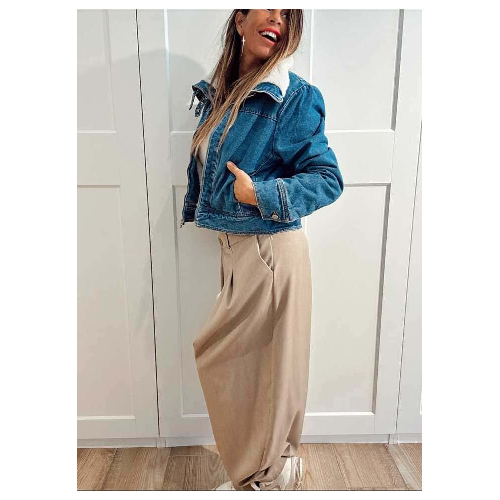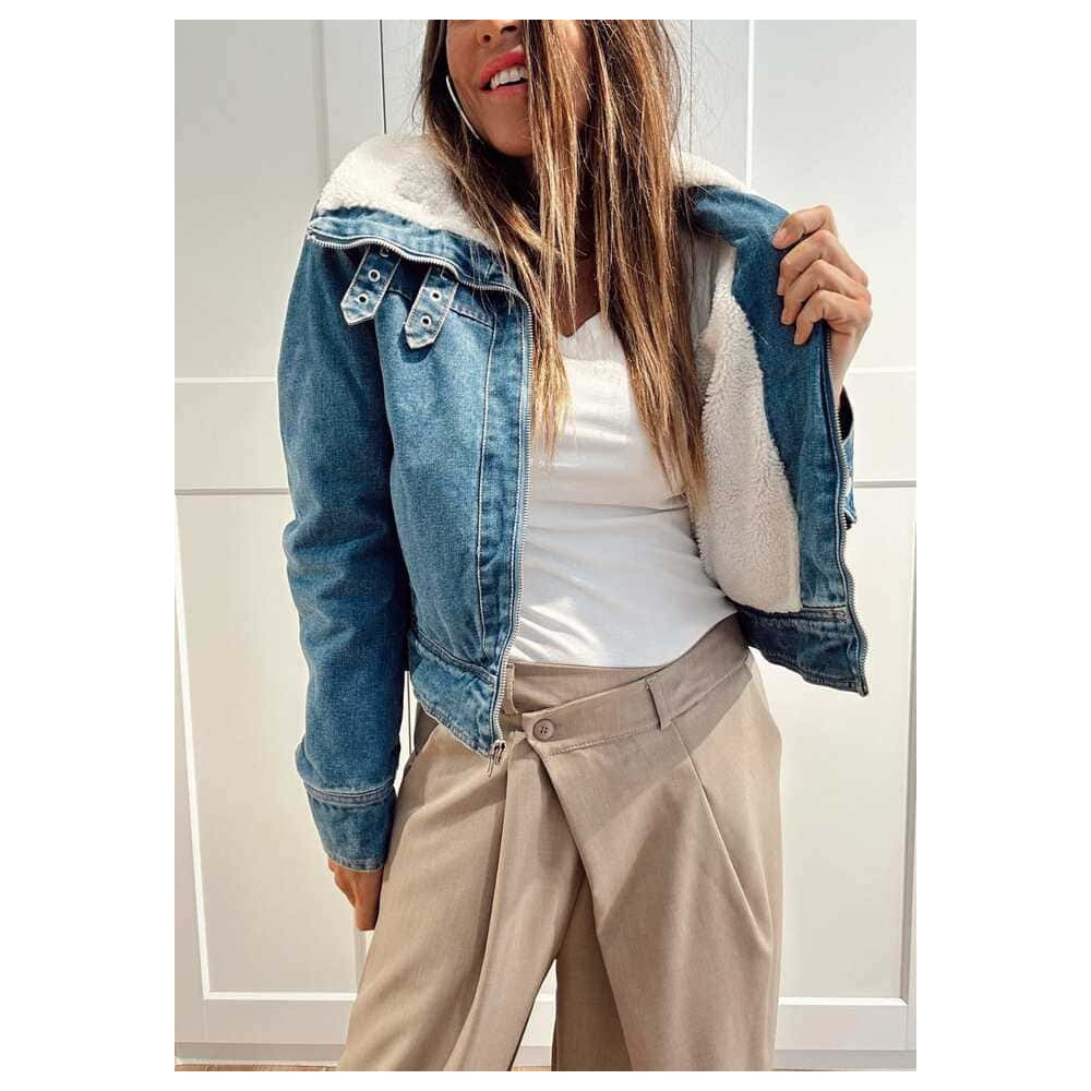 - Cazadora vaquera corta con forro de cálido borreguito (no extraíble).