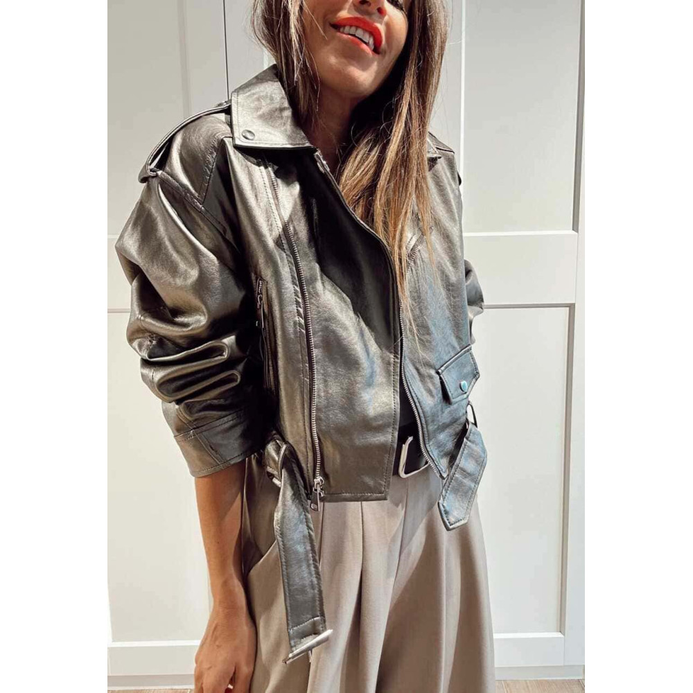 Biker Cropped Efecto Piel NYXELLE Gunmetal